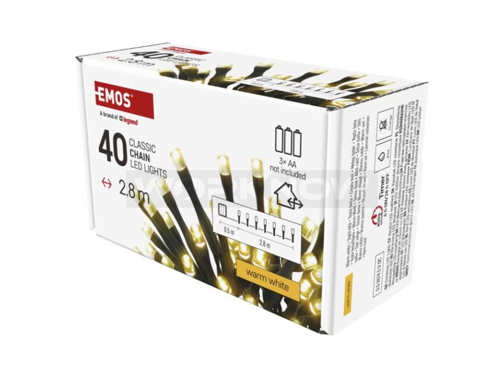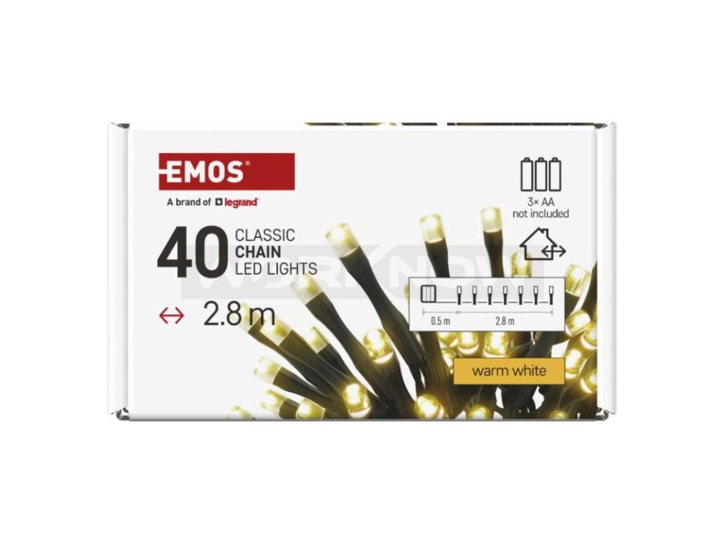 LED vánoční řetěz, 2,8 m, 3x AA, venkovní i vnitřní, teplá bílá, časovač D4FW01
