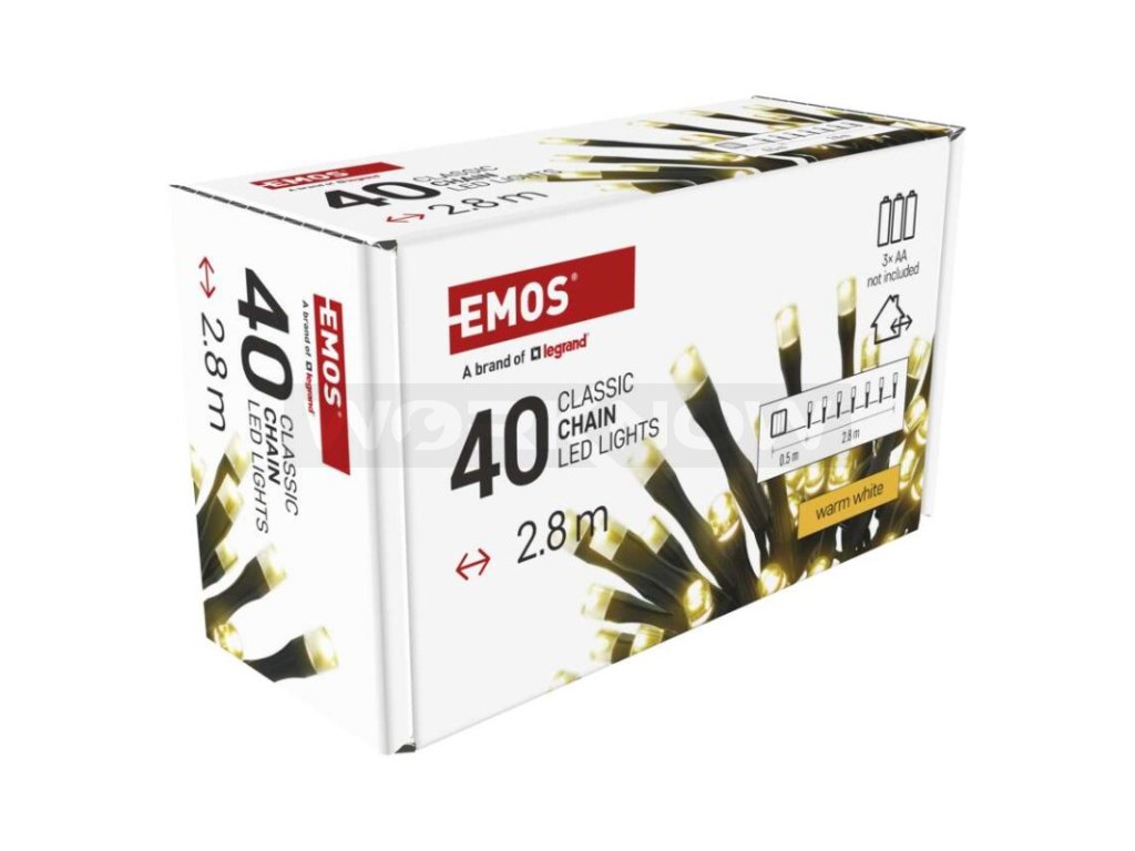 Pro rozsvícení nejen vánočního stromečku nabízíme pod značkou EMOS nepřeberné množství LED řetězů, které vynikají nízkou spotřebou elektrické energie a dlouhou životností. Vybírat můžete z řetězů určených výhradně do interiéru (IP20), exteriéru (IP44) nebo řetězů na baterie, které jsou ideální k dekorování míst bez přístupu k zásuvce. K dispozici jsou čtyři řady LED světelných řetězů, které se liší velikostí LED diody a jejím tvarem – NANO – CLASSIC – CHERRY – TRADITIONAL. Rozhodujícím kritériem při volbě správného řetězu jsou jeho délka, počet LED diod a barva světla.