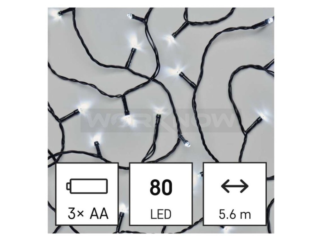 LED vánoční řetěz, 5,6 m, 3x AA, venkovní i vnitřní, studená bílá, časovač