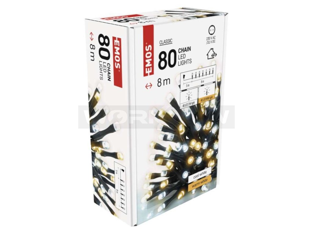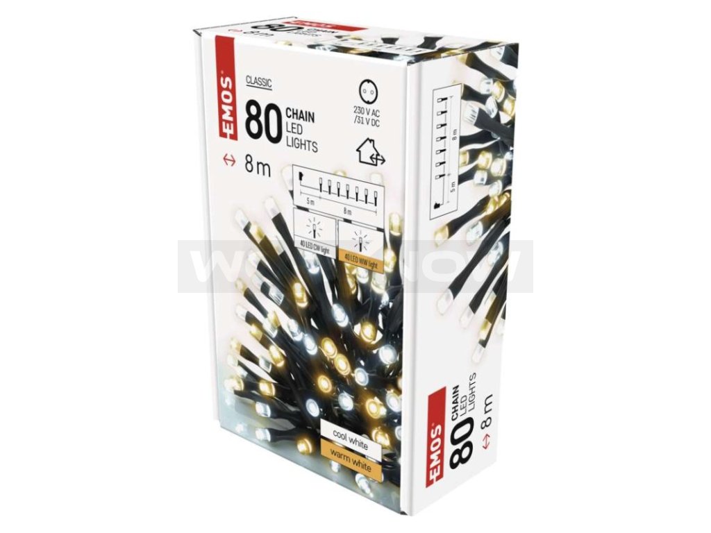 LED vánoční řetěz, 8 m, venkovní i vnitřní, teplá/studená bílá, časovač D4AN04