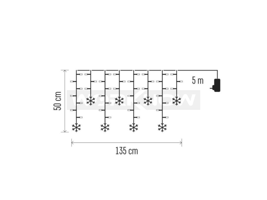 LED vánoční závěs – vločky, 135x50 cm, vnitřní, studená bílá