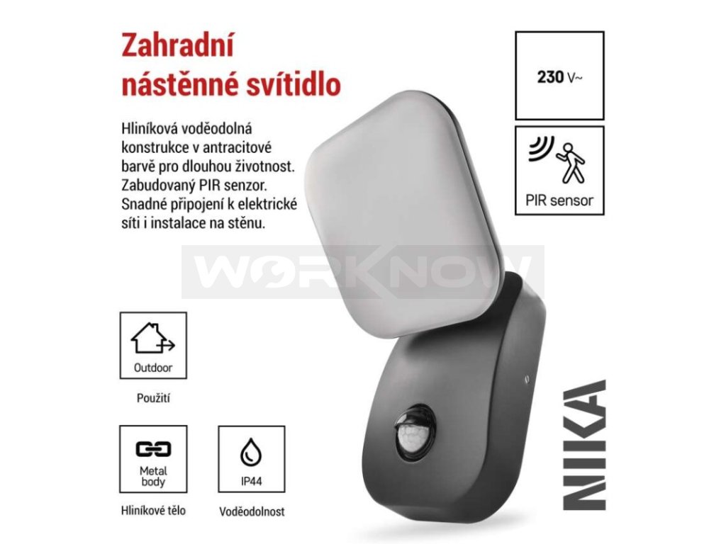 LED zahradní nástěnné svítidlo NIKA, čidlo soumraku, 12 x 12 x 20 cm, 12,8 W, teplá bílá