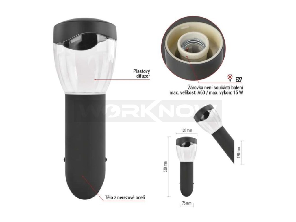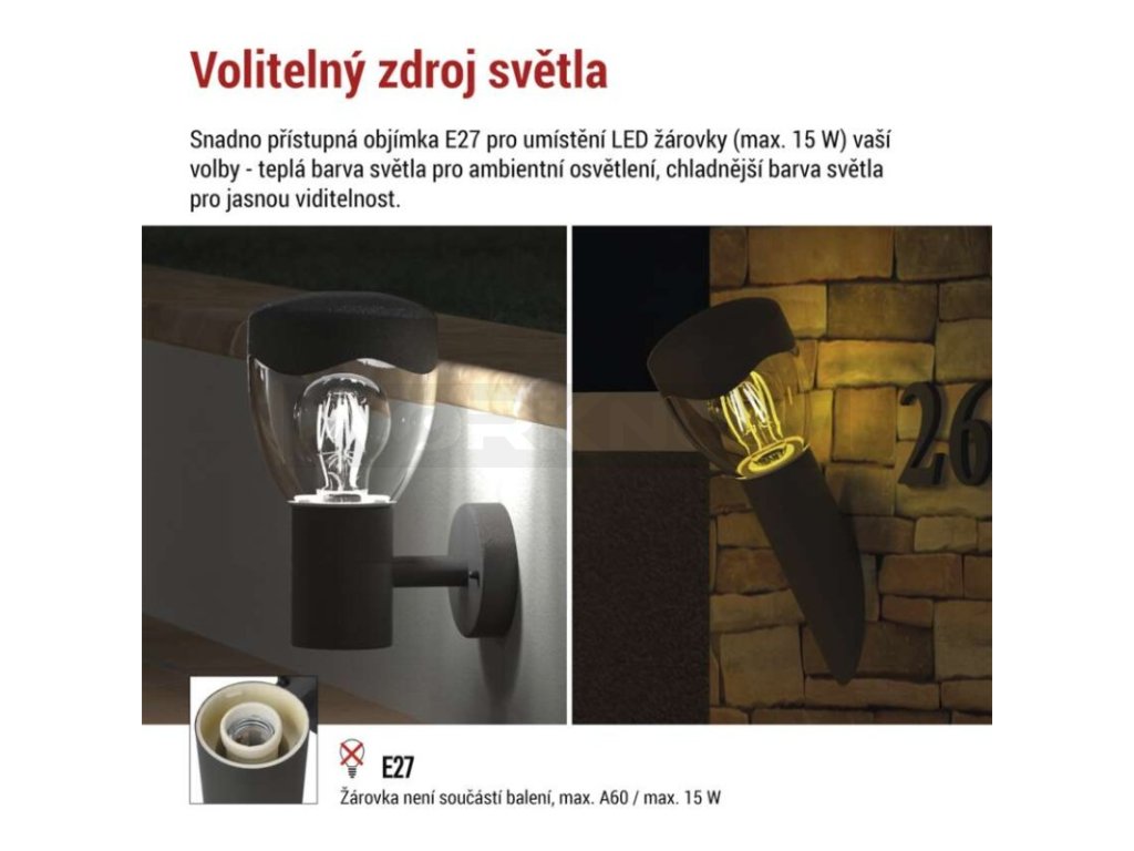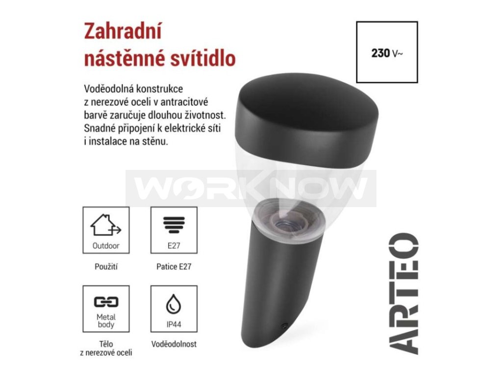 Zahradní nástěnné svítidlo ARTEO, 12 x 12 x 33 cm, 1 x E27, 15 W