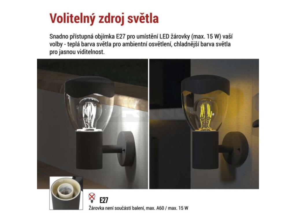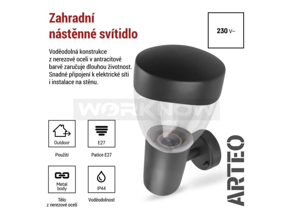 Zahradní nástěnné svítidlo ARTEO, 16,4 x 12 x 23 cm, 1 x E27, 15 W