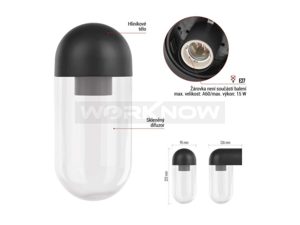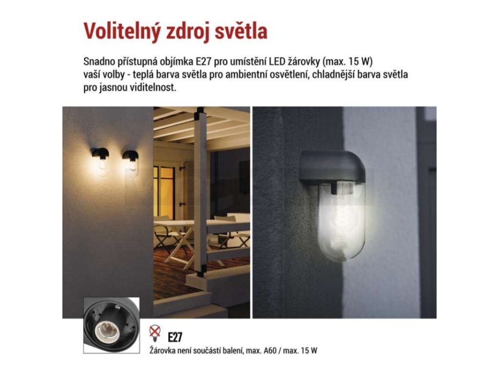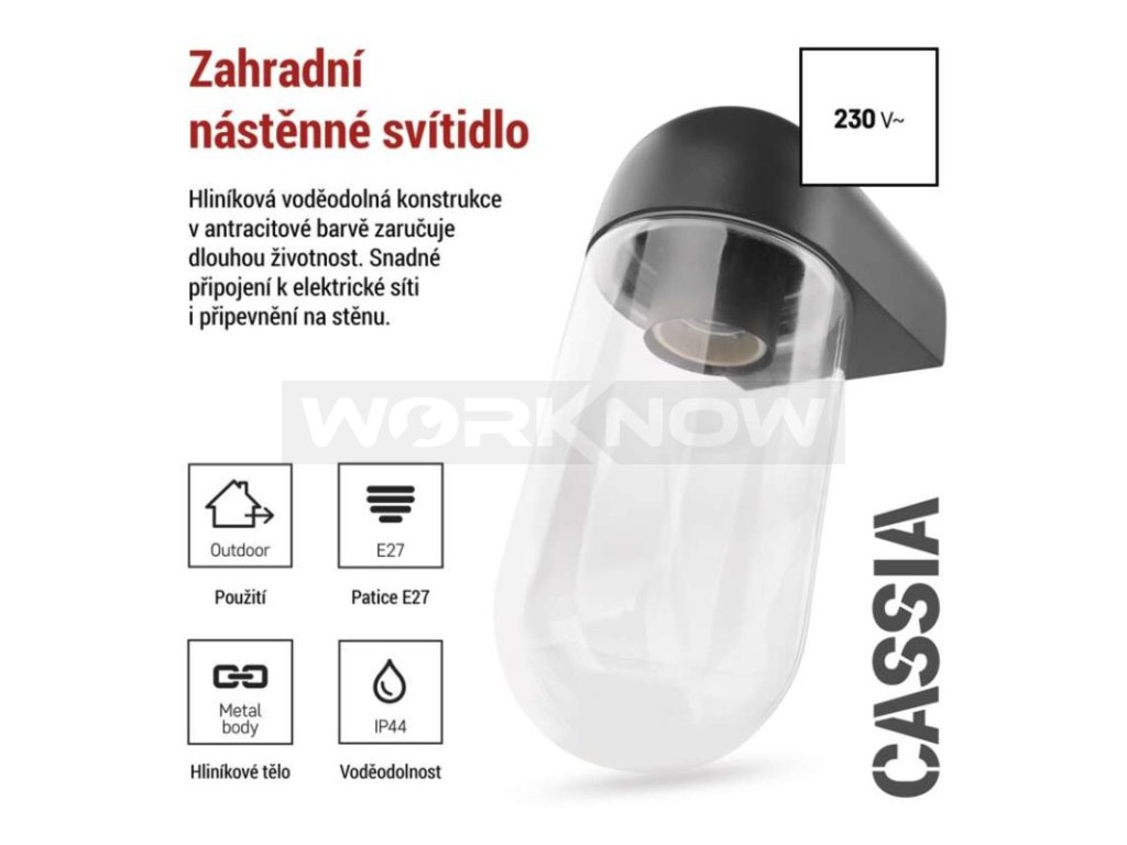 Zahradní nástěnné svítidlo CASSIA, 12,6 x 9,5 x 22,2 cm, 1 x E27, 15 W