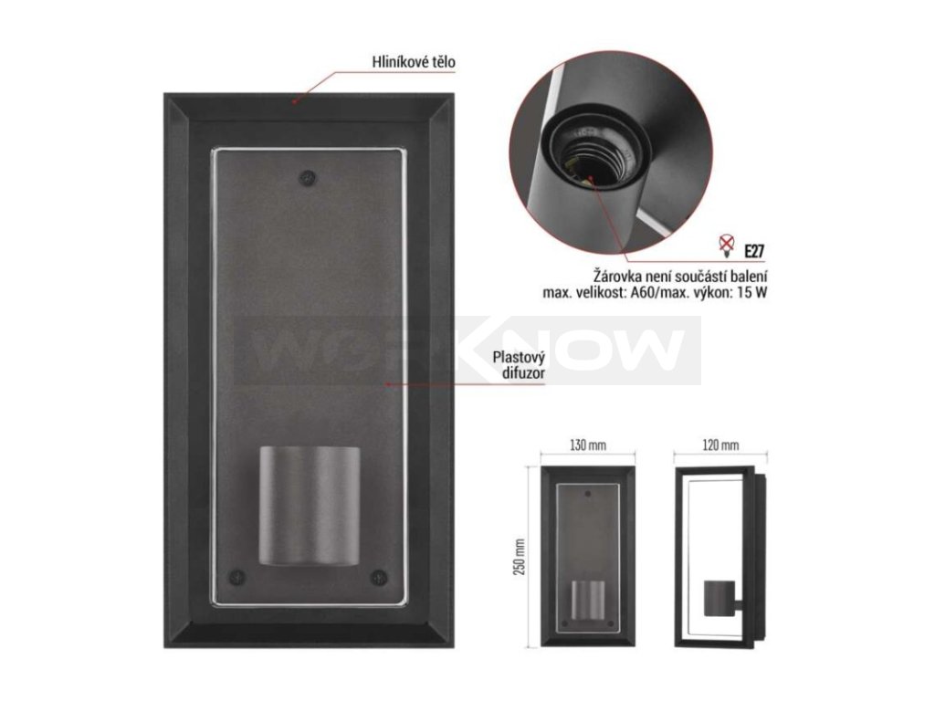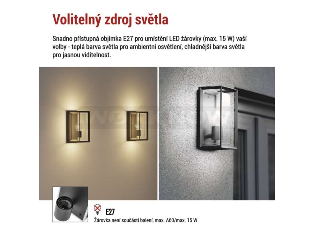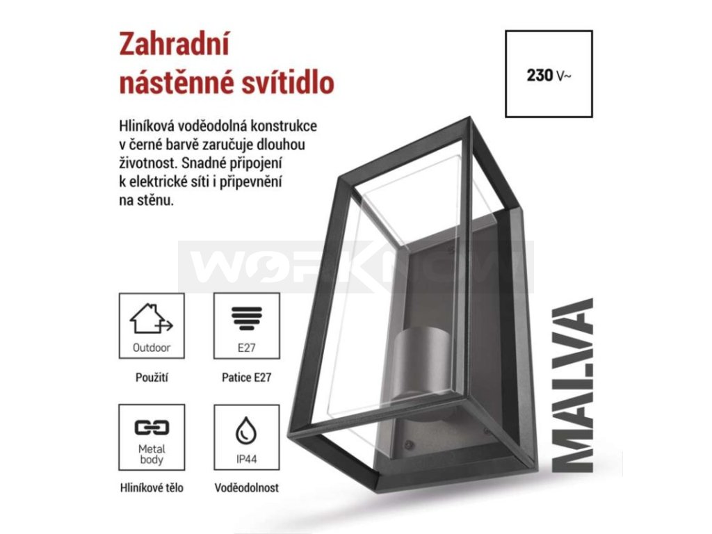 Zahradní nástěnné svítidlo MALVA, 13 x 12 x 25 cm, 1 x E27, 15 W