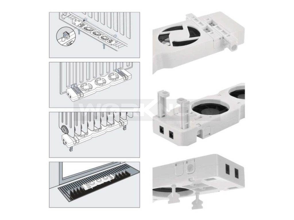 Rozšiřující sada pro ventilátor pod radiátor pro zvýšení účinnosti vytápění.