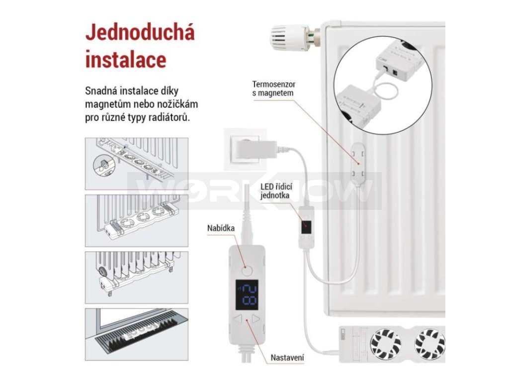 Snadná instalace a montáž na většinu ocelových teplovodních radiátorů a konvektorů.
