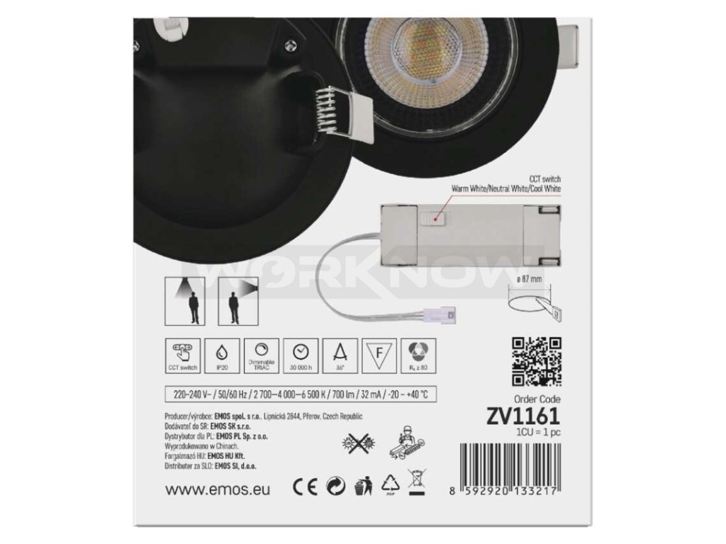 teplota chromatičnosti: 2 700/4 000/6 500 K