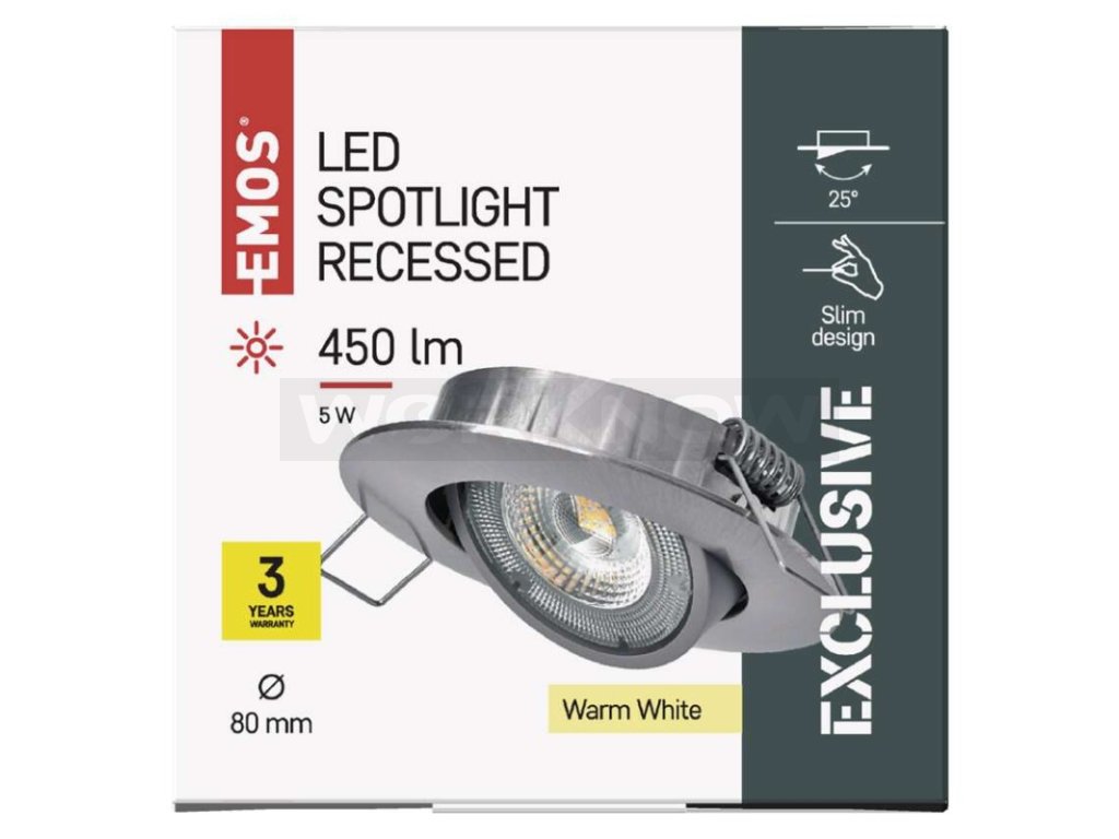 Kombinuje moderní vzhled společně s poctivým a kvalitním zpracováním. Liší se dle průměru, povrchové úpravy, příkonu a barvy světla. Vybere si tak každý. Bodové stropní svítidlo Exclusive uvnitř ukrývá integrovaný driver a velmi úsporné LED diody s vysokou světelnou účinností. Životnost svítidla je dlouhých 25 000 hodin. Praktickou výhodou je také možnost naklopení svítidla až o 25°. Potěší i prodloužená tříletá záruka.