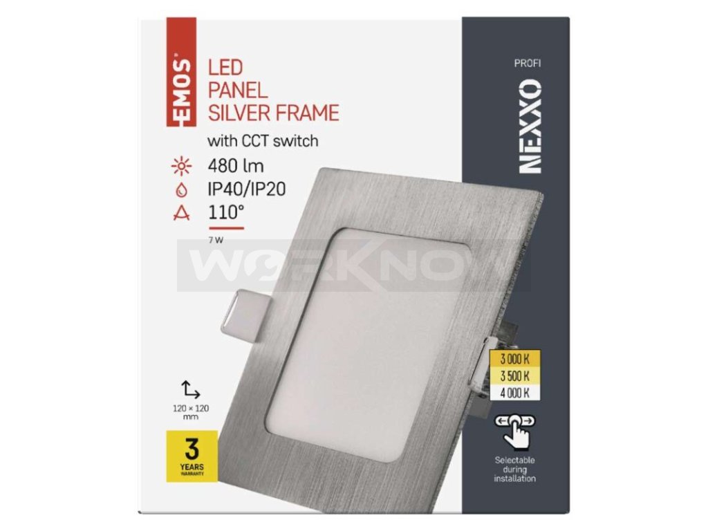 LED vestavné svítidlo NEXXO, čtvercové, stříbrné, 7W, se změnou CCT