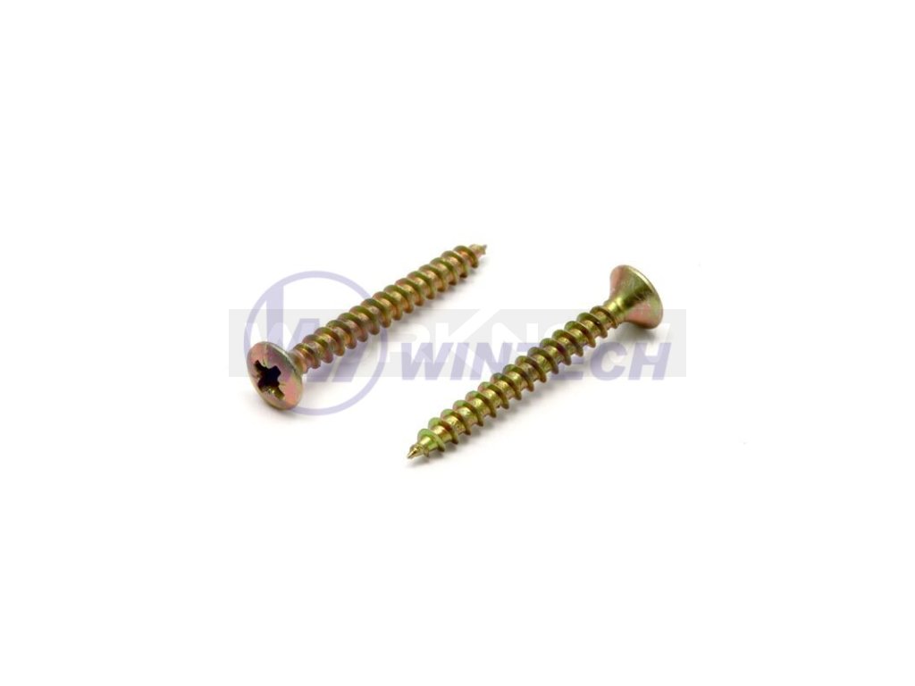 Vruty do dřeva, zápustná čočkovitá hlava, křížová drážka Pozidriv, zinek žlutý
