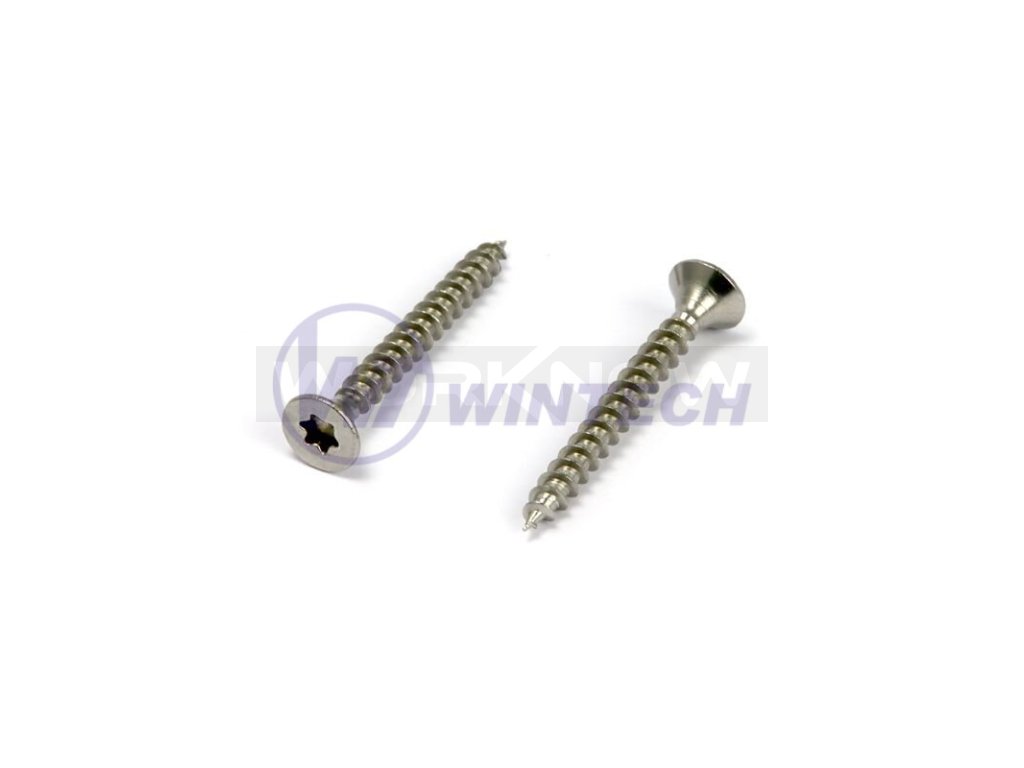 Standardní vrut z jakostní nerezavějící oceli AISI304, který může být použit pro kotvení dřevěných prvků jak v interiéru (obklady, schodiště, olištování), tak v exteriéru (fasády, oplocení, obklady a pod.). Odolává působení vody, slabých kyselin a zásad. Může být podmíněně použit na kotvení prken z cizokrajných dřevin. Může být použit na kotvení prvků v oblastech zasažených průmyslovými exhalacemi. Montáž prvků v bezprostřední blízkosti bazénů s chlorovanou nebo slanou vodou se nedoporučuje.