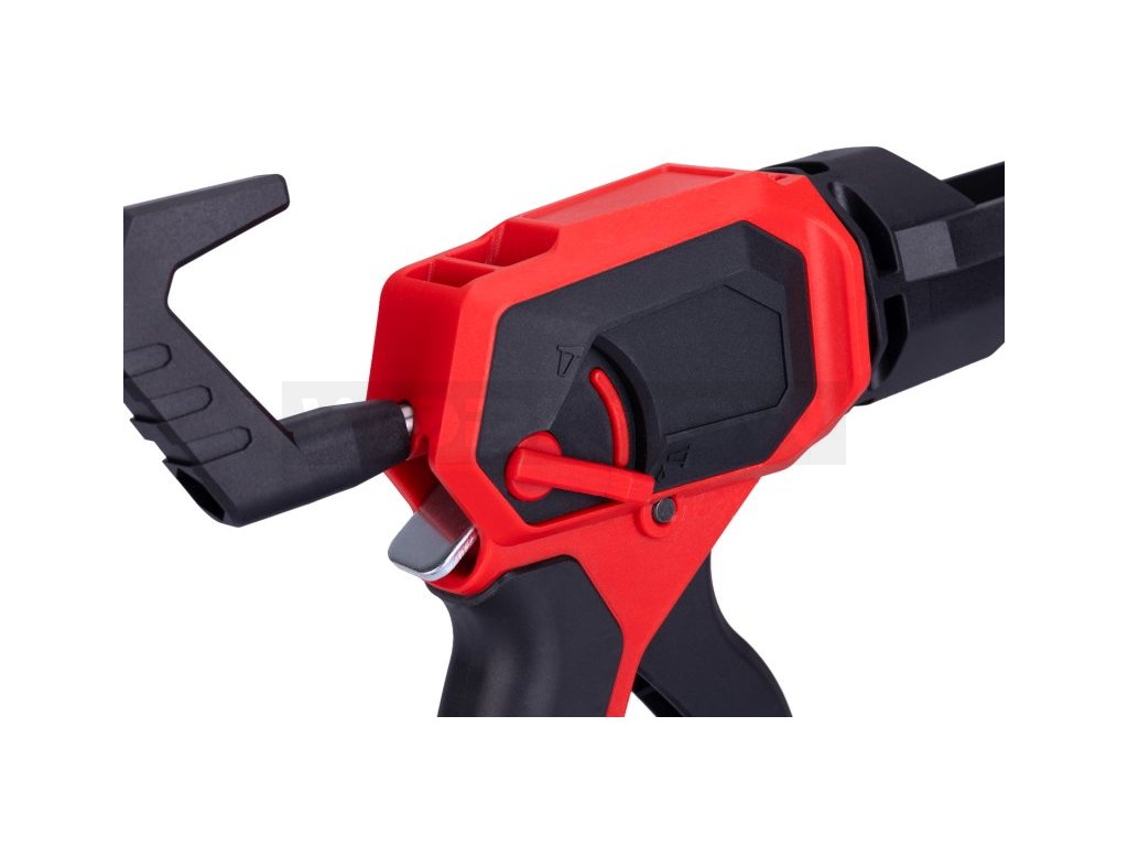 Vytlačovací pistole, krokový vytlačovací mechanismus, ergonomická rukojeť - kov / plast, kovový rám, pistole je kroková - převodová, snažíš vytlačování tmelů, použití: pro vytláčení tmelů a lepidel v kartuších 310 ml.