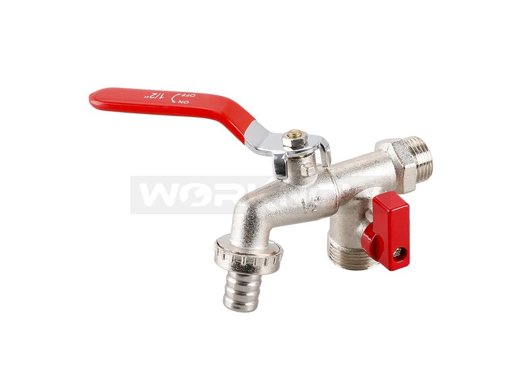 - připojení 1/2", dvojité vyústění 3/4" se samostatnými pákovými uzávěry - umožňuje napojit hadici a zároveň mít kdykoliv jednoduchý přístup k vodě pro další použití - napouštění vody, nebo připojení další hadice