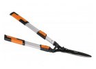 Nůžky na živé ploty - vlnité ostří s teleskopickými rameny, kvalitní použité matriály i precizní zpracování, zvlněné ostří zamezuje vyklouzávání i drobných větviček při střihu, hliníková ramena s eliptickým profilem a nastavitelnou délkou - větší dosah pro střih i větší páka pro snadnější práci, ergonomické tvarované rukojeti zaručují pohodlnou práci a bezpečný uchop, použití: k zastřihávání živých plotů, keřů, stromků.