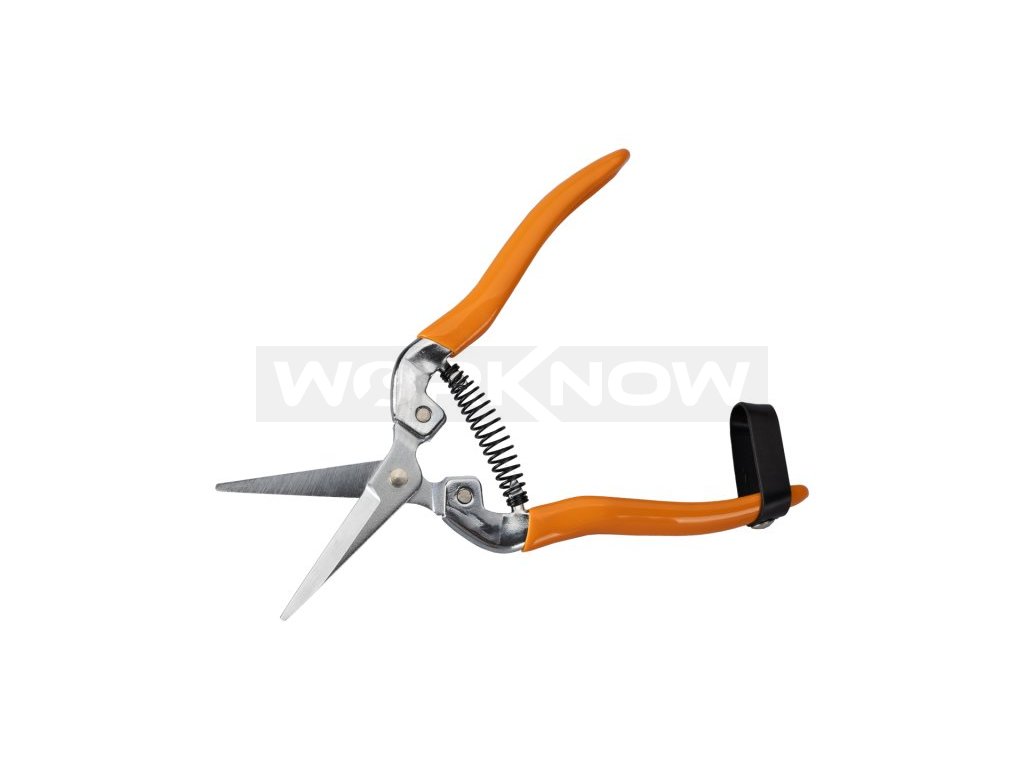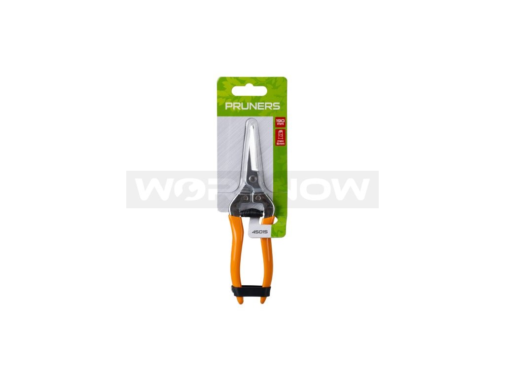 Zahradnické nůžky, rovné ostří, pogumované ergonomicky tvarované ručky, tenké rovné čepele, použití : vhodné zejména pro sklízení vinné révy a květiny - růže, celková délka 19 cm, balení : blistr s eurootvorem.Dodatočné parametre