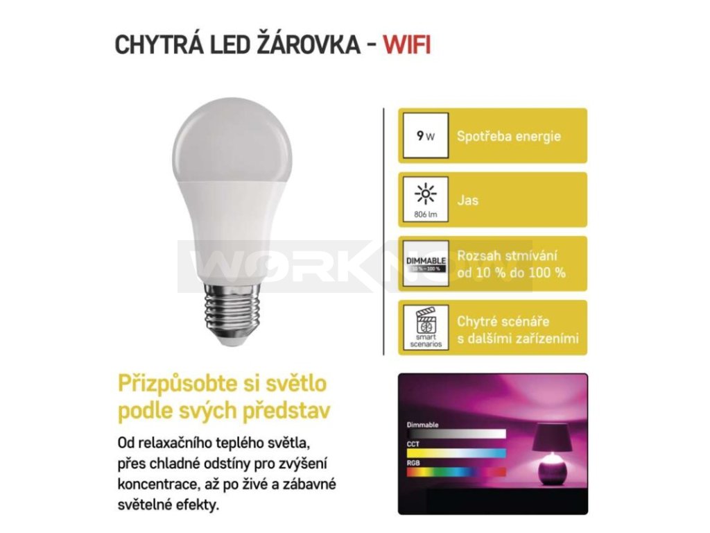 Chytrá LED žárovka GoSmart A60 / E27 / 9 W (60 W) / 806 lm / RGB / stmívatelná / WiFi