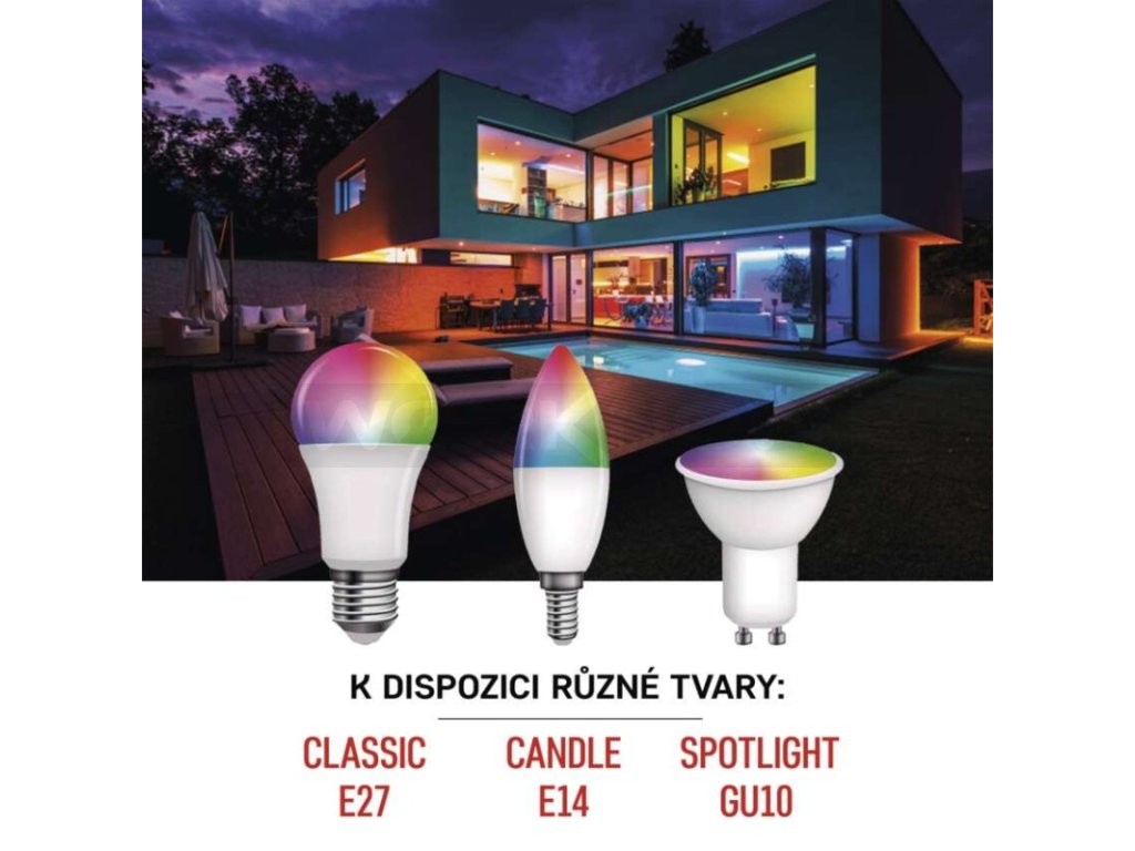 Žárovky EMOS GoSmart jsou dostupné v různých velikostech a tvarech ve formě klasické žárovky A60, elegantní svíčky nebo praktické MR16. Na výběr máte mezi paticemi E27, E14, která je oblíbená například u lampiček, nebo GU10 pro bodové osvětlení.