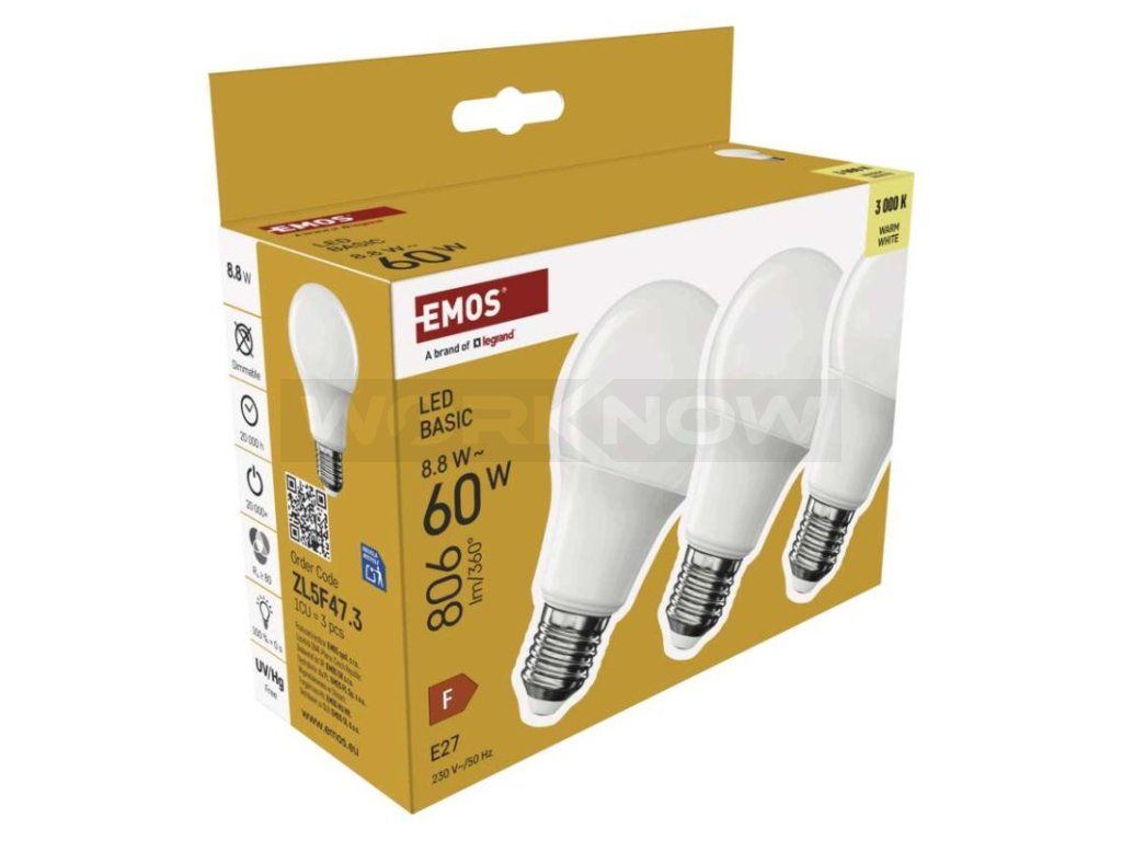 LED žárovka Basic A60 / E27 / 8,8 W (60 W) / 806 lm / teplá bílá