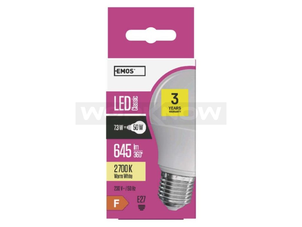 LED žárovka Classic A60 / E27 / 7,3 W (50 W) / 645 lm / teplá bílá ZQ5130