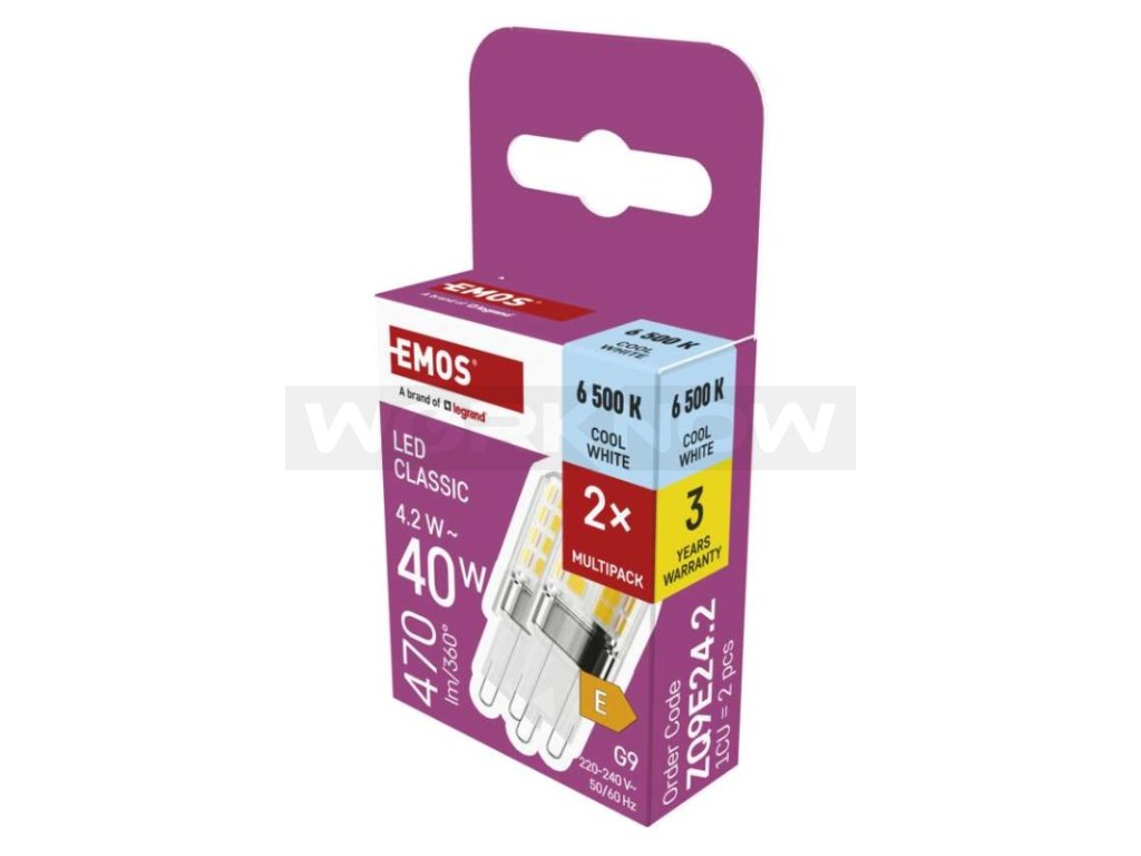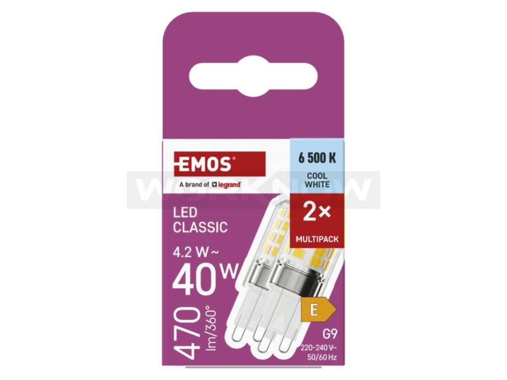 LED žárovka Classic JC / G9 / 4,2 W (40 W) / 470 lm / studená bílá / 2 ks