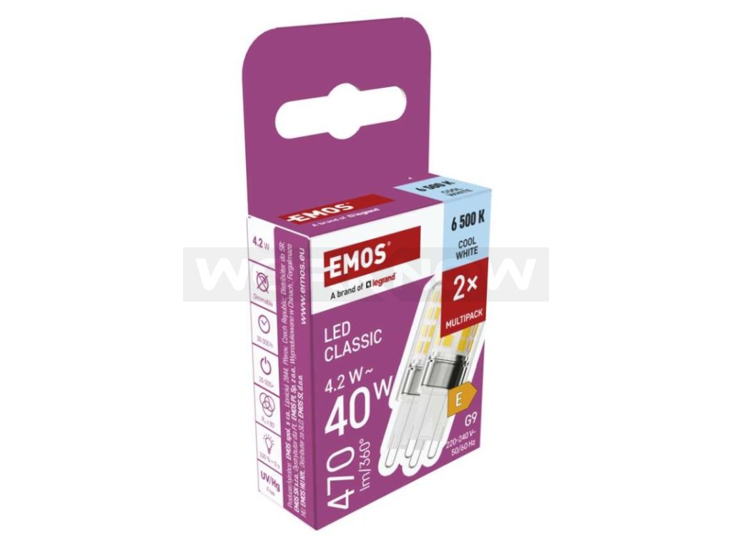| Patice (uchycení žárovky): | G9 |