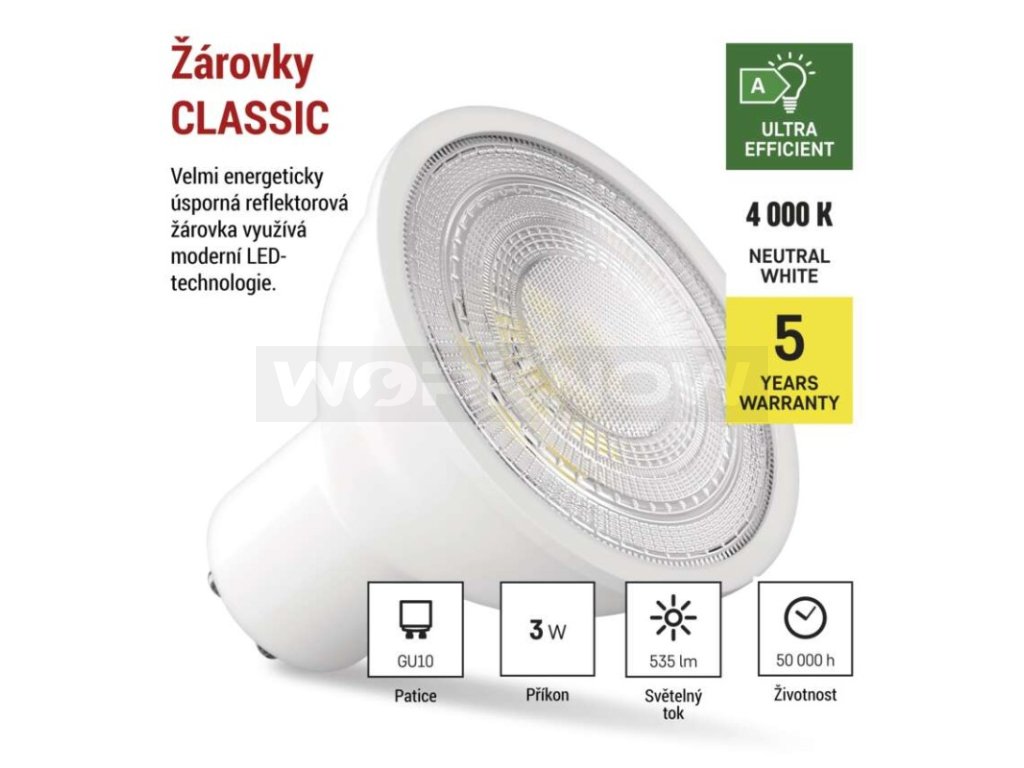 | Patice (uchycení žárovky): | GU10 |
