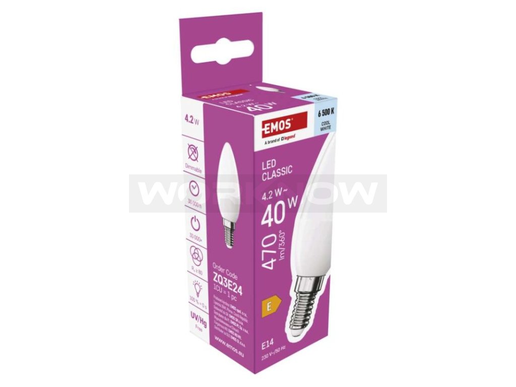 LED žárovka Classic svíčka / E14 / 4,2 W (40 W) / 470 lm / studená bílá