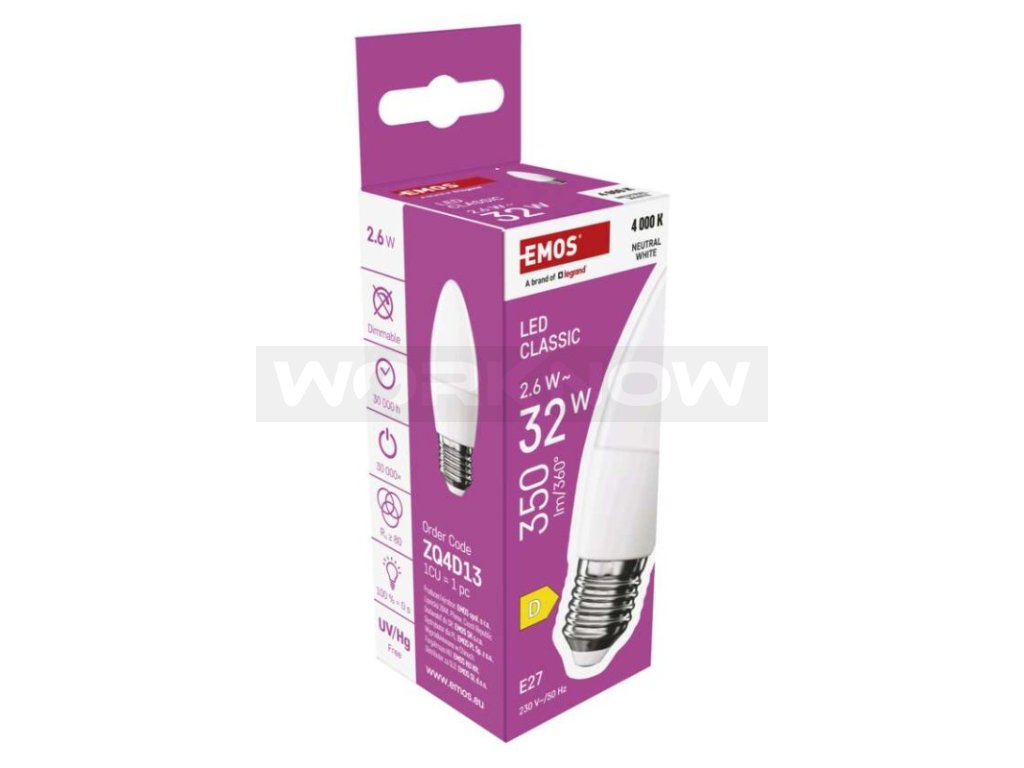 LED žárovka Classic svíčka / E27 / 2,6 W (32 W) / 350 lm / neutrální bílá