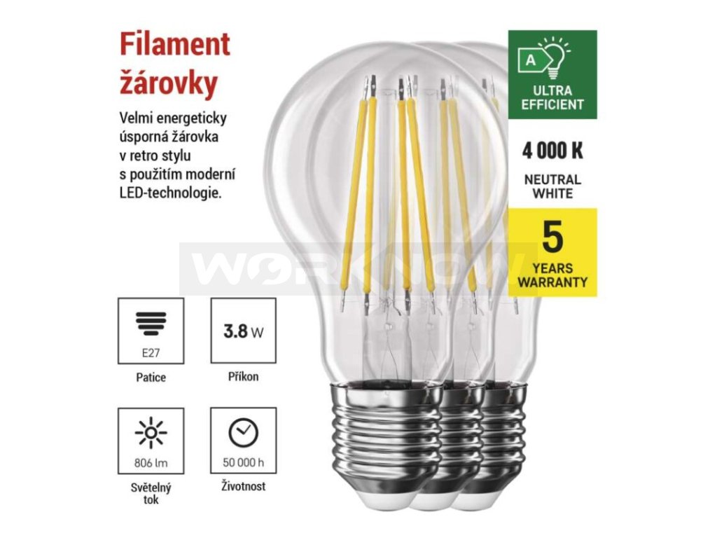 Sviťte více za méně díky vysoké světelné účinnosti 212 lm/W a nízkému příkonu 3,8 W. Tímto šetříte nejen vaši peněženku, ale i životní prostředí, jelikož snižujete svou uhlíkovou stopu.