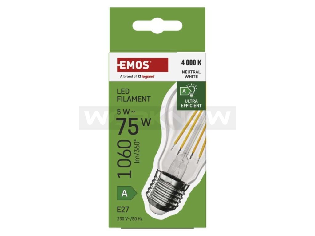 LED žárovka Filament A60 A CLASS/ E27 / 5 W (75 W) / 1 060 lm / neutrální bílá