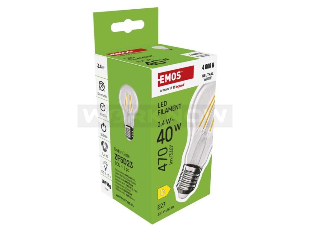 LED žárovka Filament A60 / E27 / 3,4 W (40 W) / 470 lm / neutrální bílá