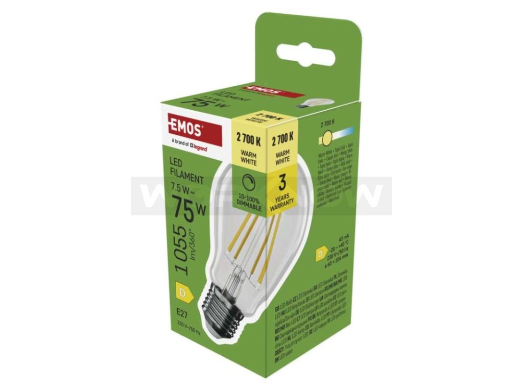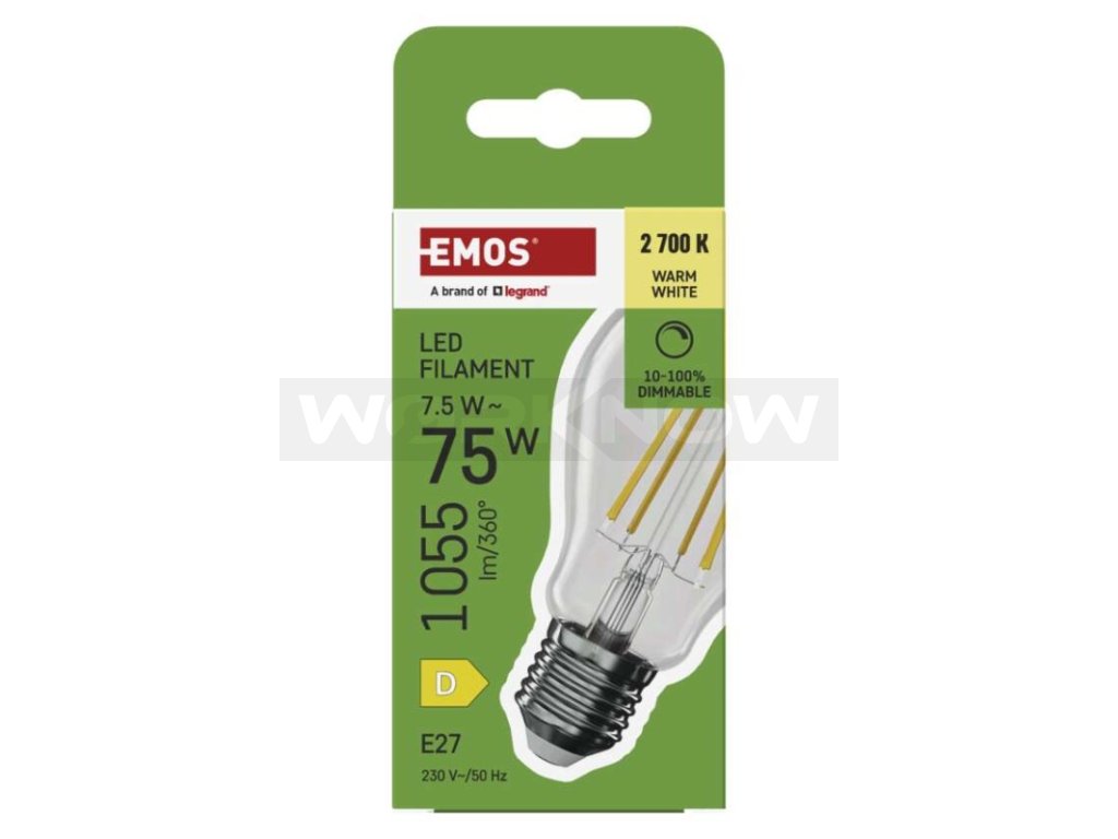 LED žárovka Filament A60 / E27 / 7,5 W (75 W) / 1 055 lm / teplá bílá / stmívatelná