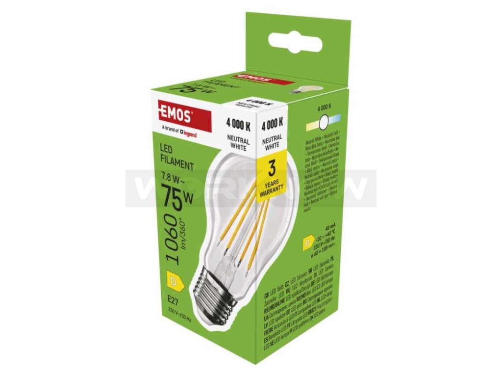 LED žárovka Filament A60 / E27 / 7,8 W (75 W) / 1060 lm / neutrální bílá