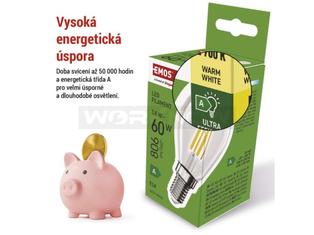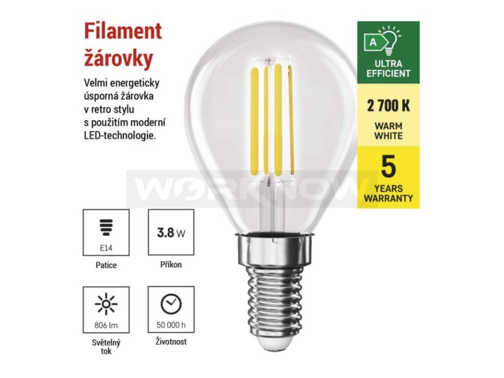 LED žárovka Filament Mini Globe A CLASS/ E14 / 3,8 W (60 W) / 806 lm / teplá bílá