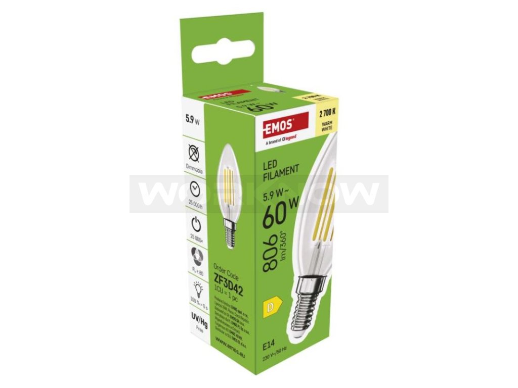 LED žárovka Filament svíčka / E14 / 5,9 W (60 W) / 806 lm / teplá bílá