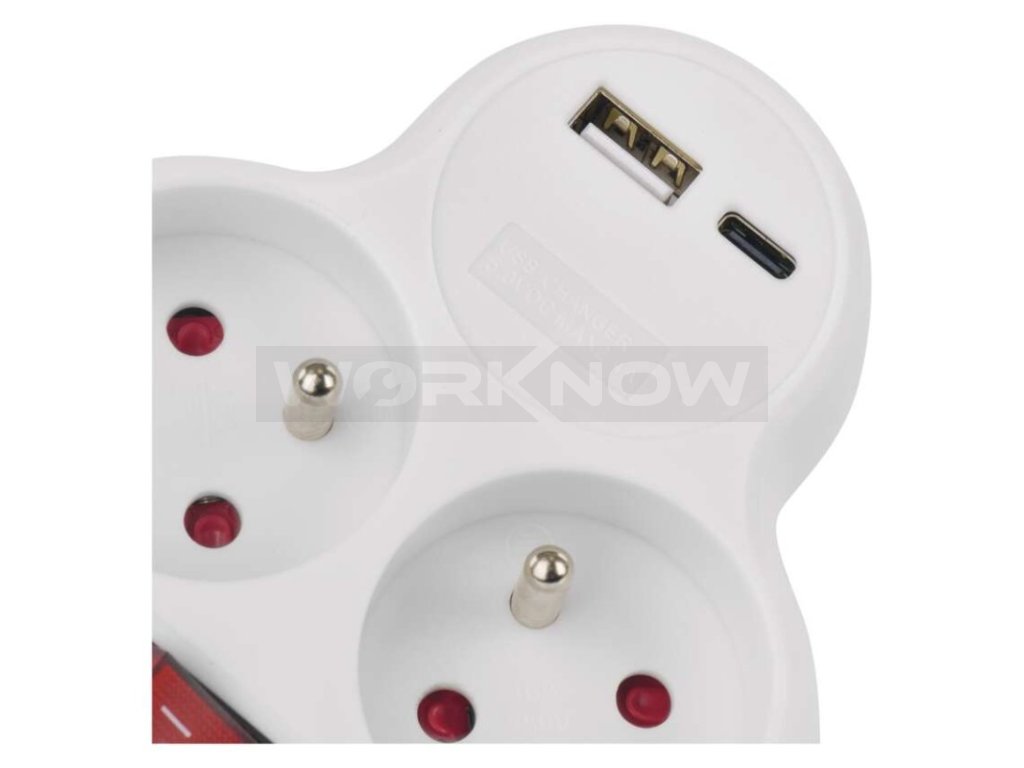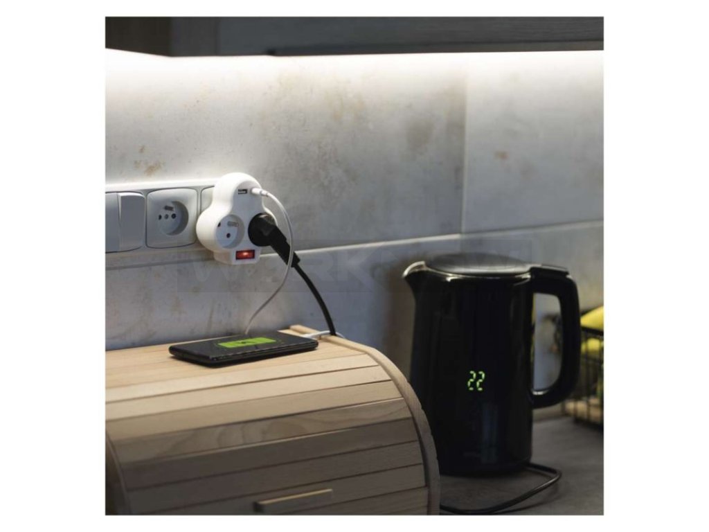 produkt: rozbočovací zásuvka 2×+1×USB-A+1×USB-C 5 V DC 3,4 A max. 17 W