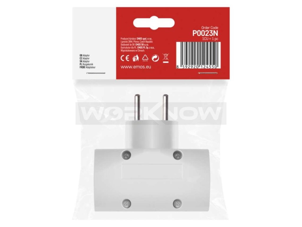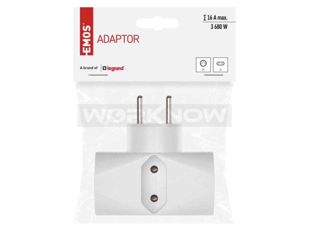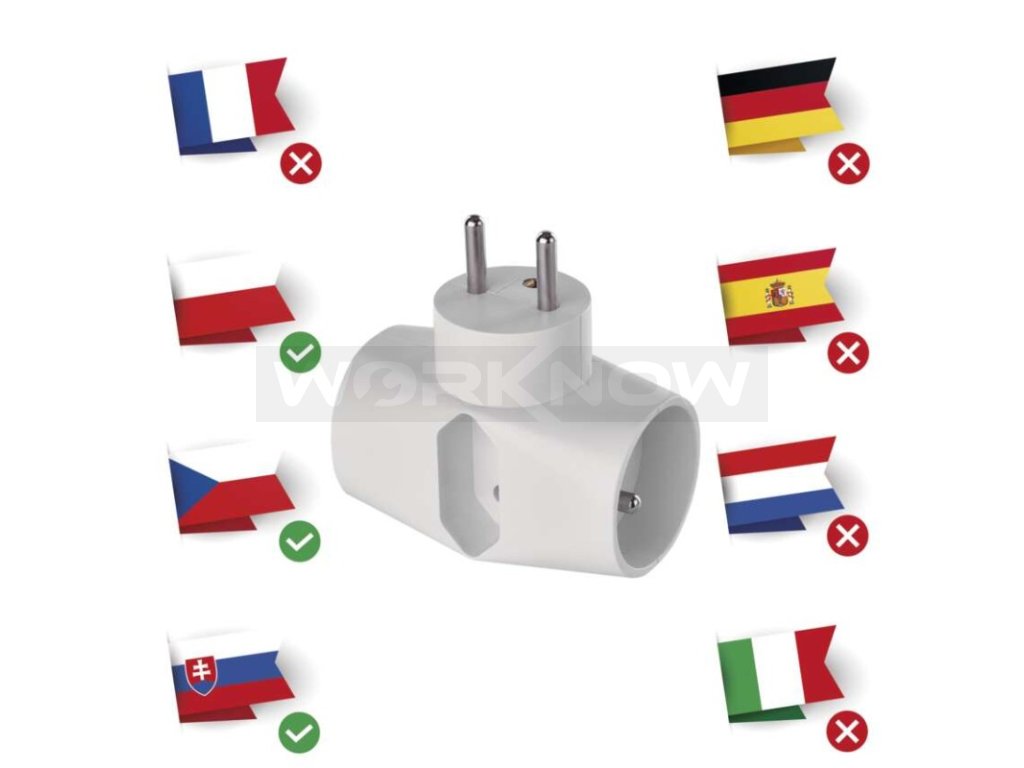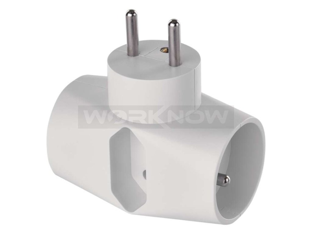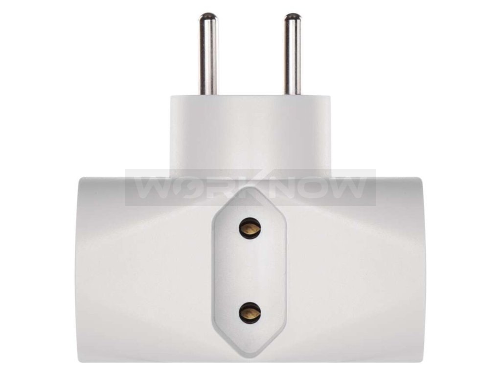 Rozbočovací zásuvka 2× kulatá + 1× plochá, bílá