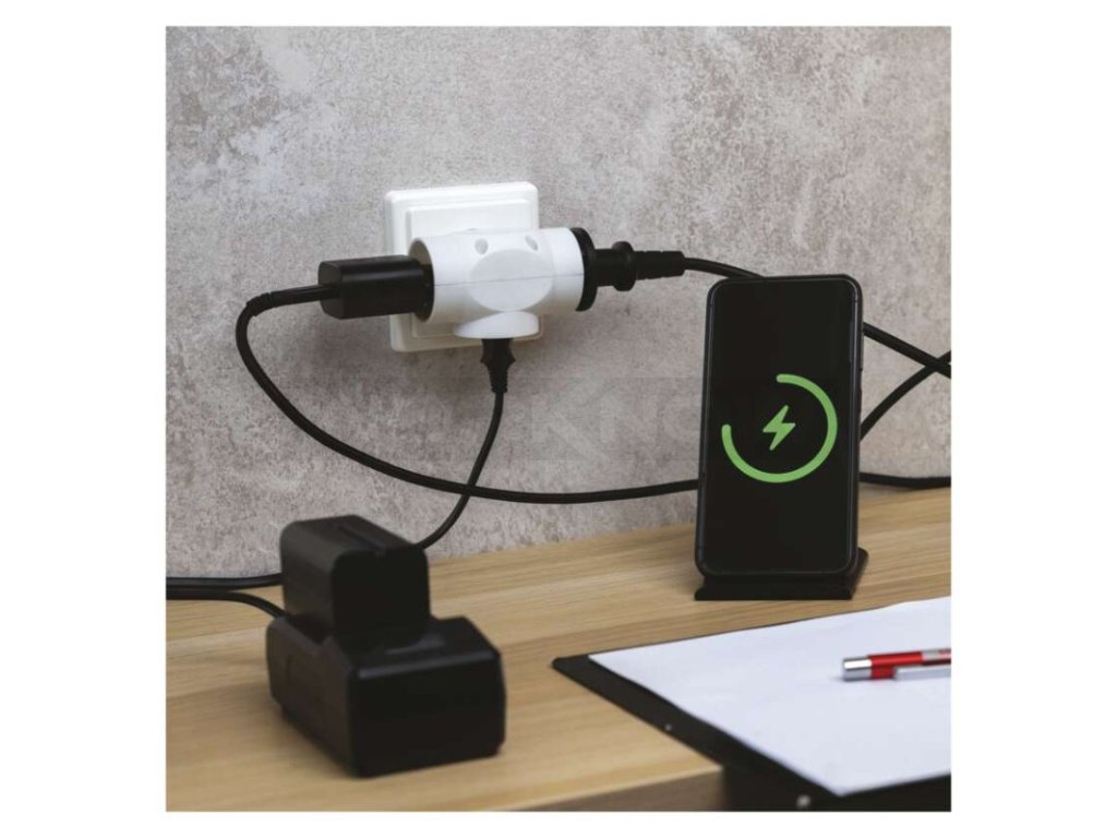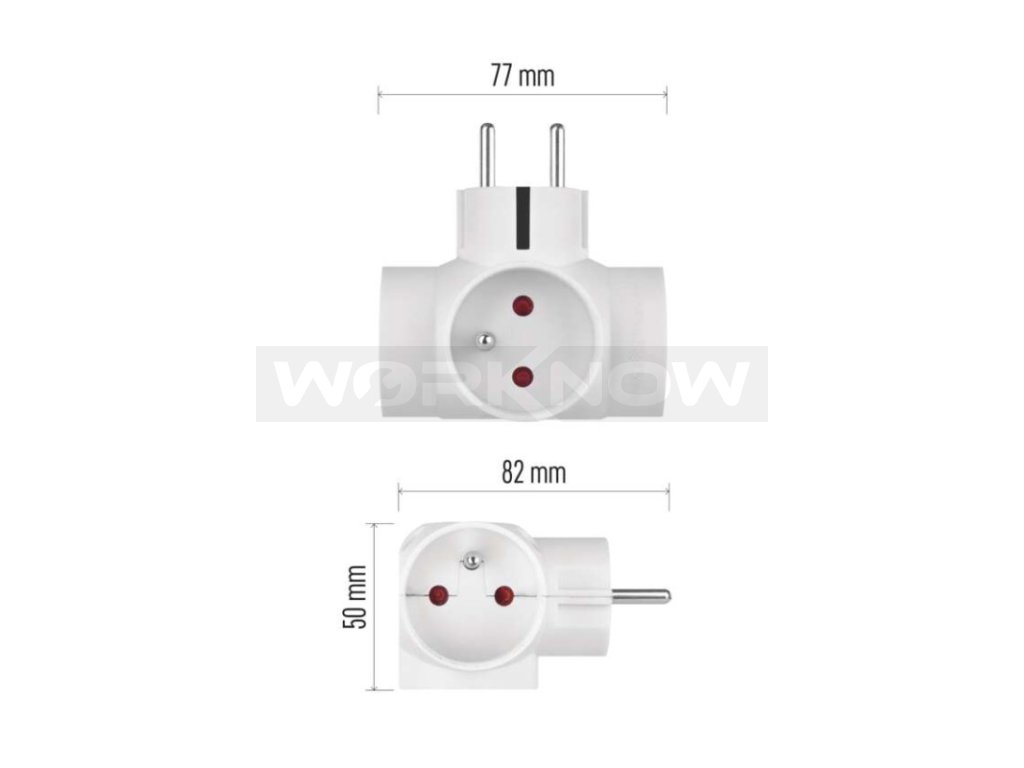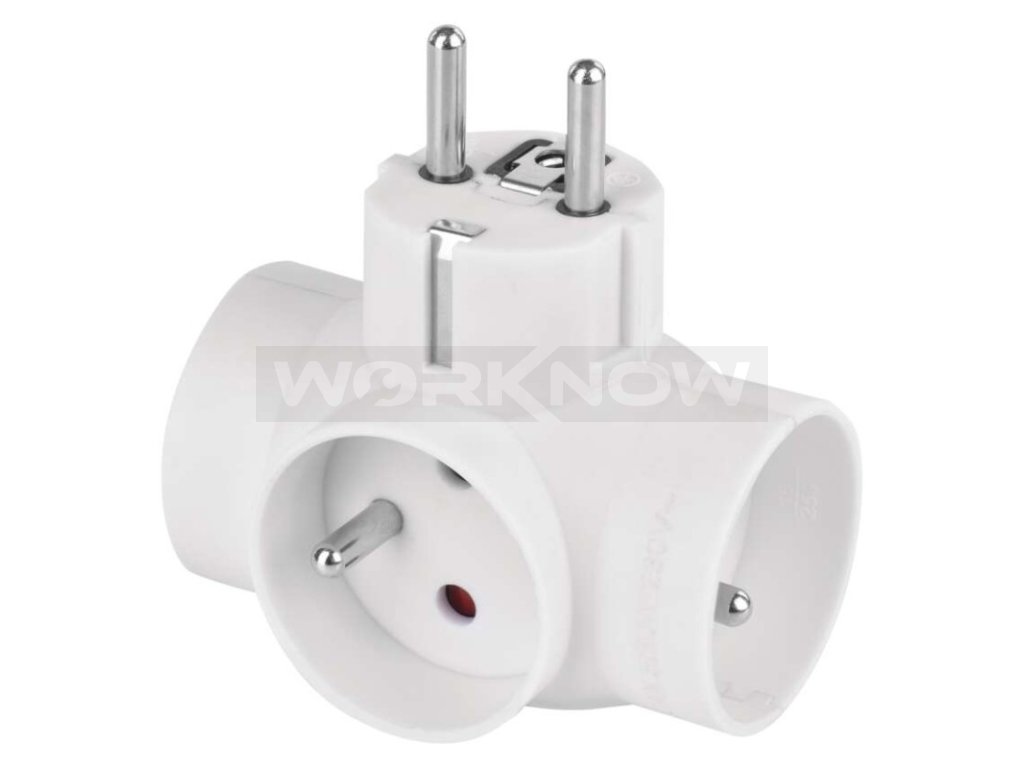 Rozbočovací zásuvka 3×, kulatá, bílá