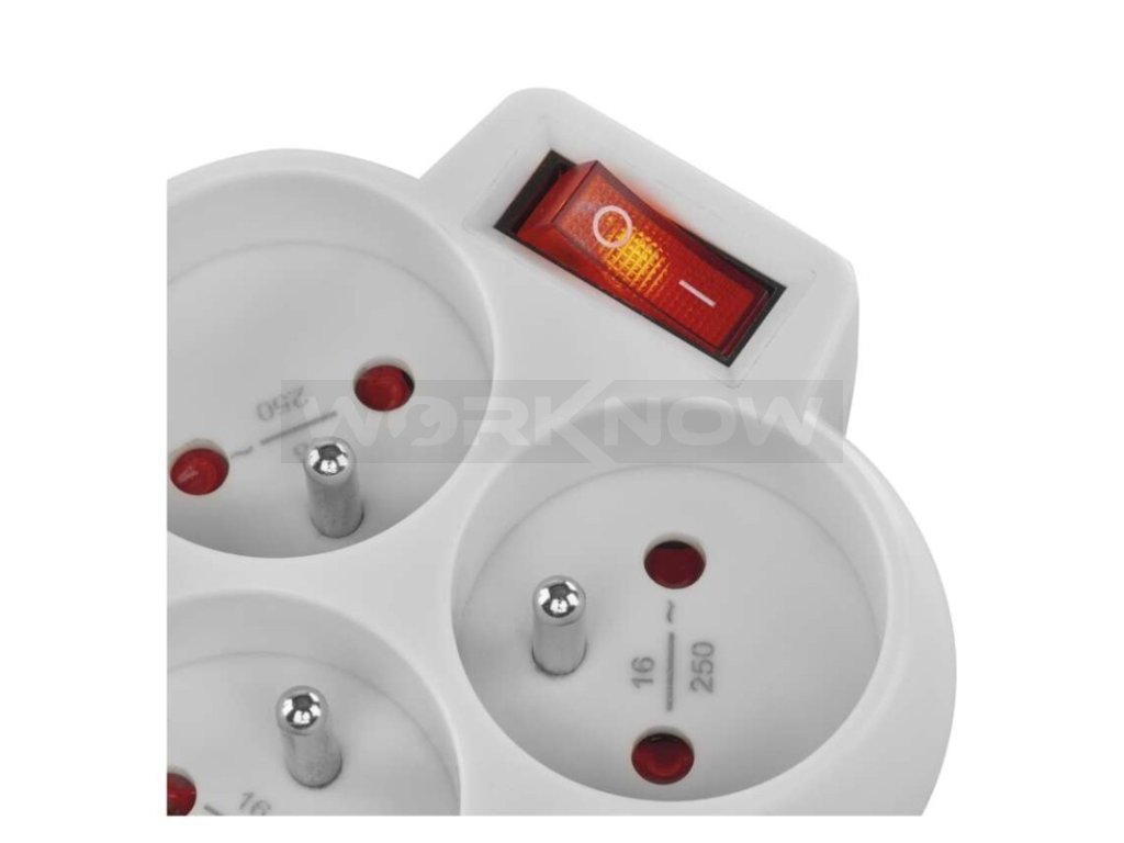 Praktická rozbočovací zásuvka v bílém provedení. Snadno zapojíte více spotřebičů dle daného počtu zásuvek. Její výhodou je vypínač pro snadné a rychlé odpojení od elektrické sítě.