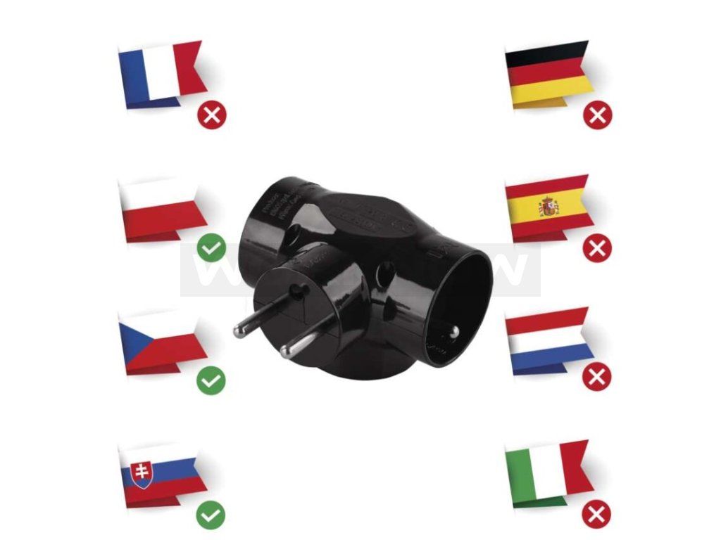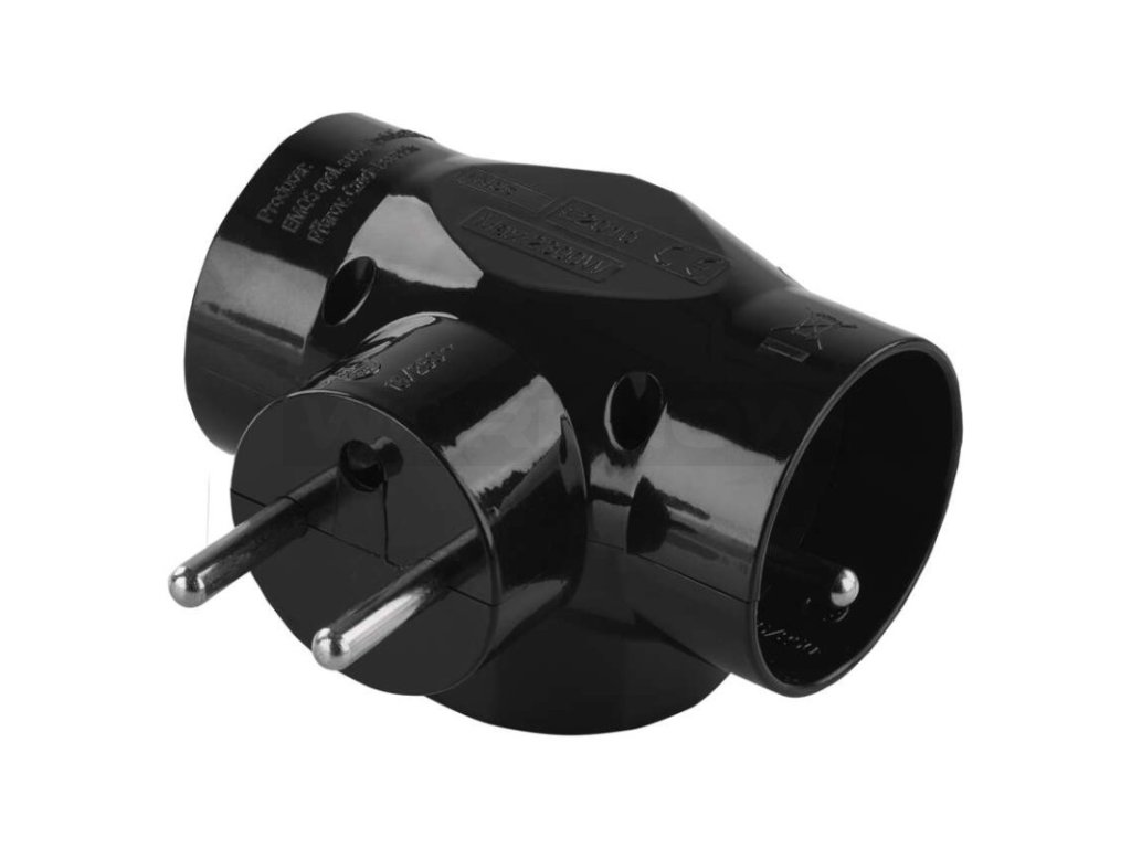 Rozbočovací zásuvka 3× kulatá, černá P0030