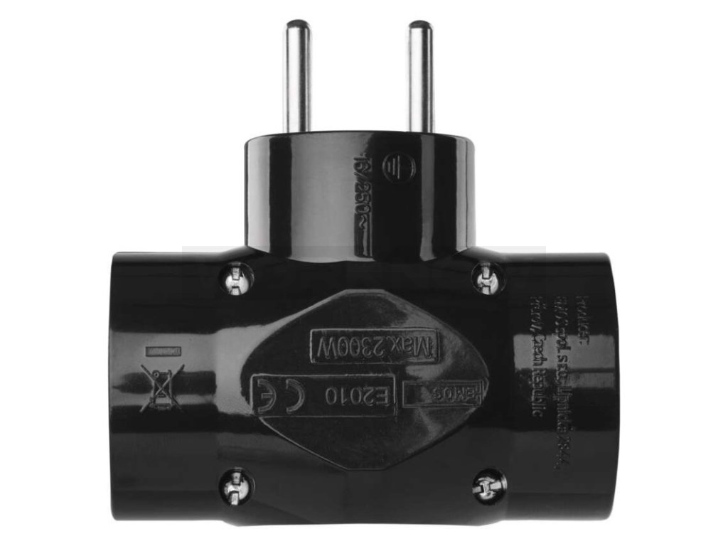 Praktická rozbočovací zásuvka v černém provedení. Pomocí této zásuvky rozbočíte napájecí síť 230 V~ a snadno zapojíte více spotřebičů dle daného počtu zásuvek.