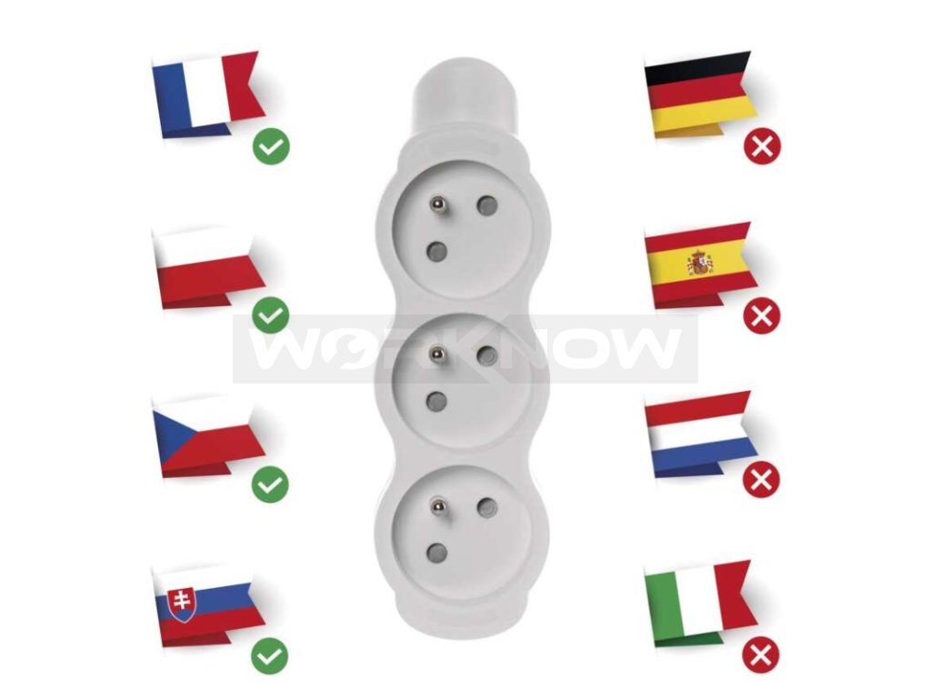 počet zásuvek: 3× 2P + PE