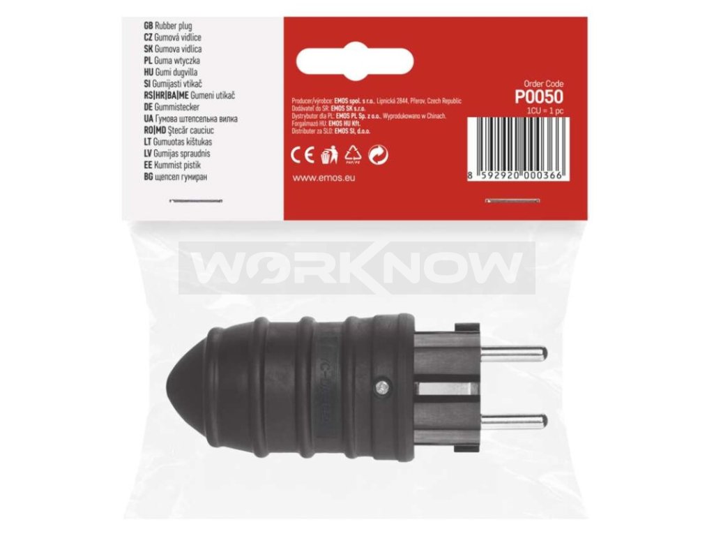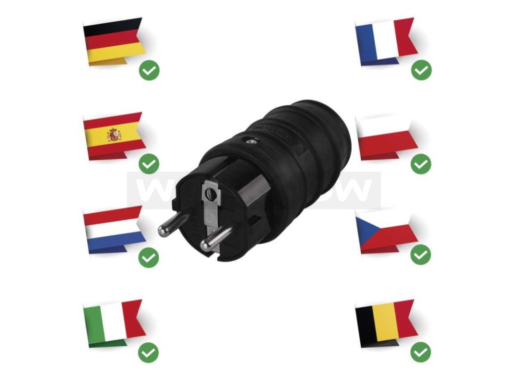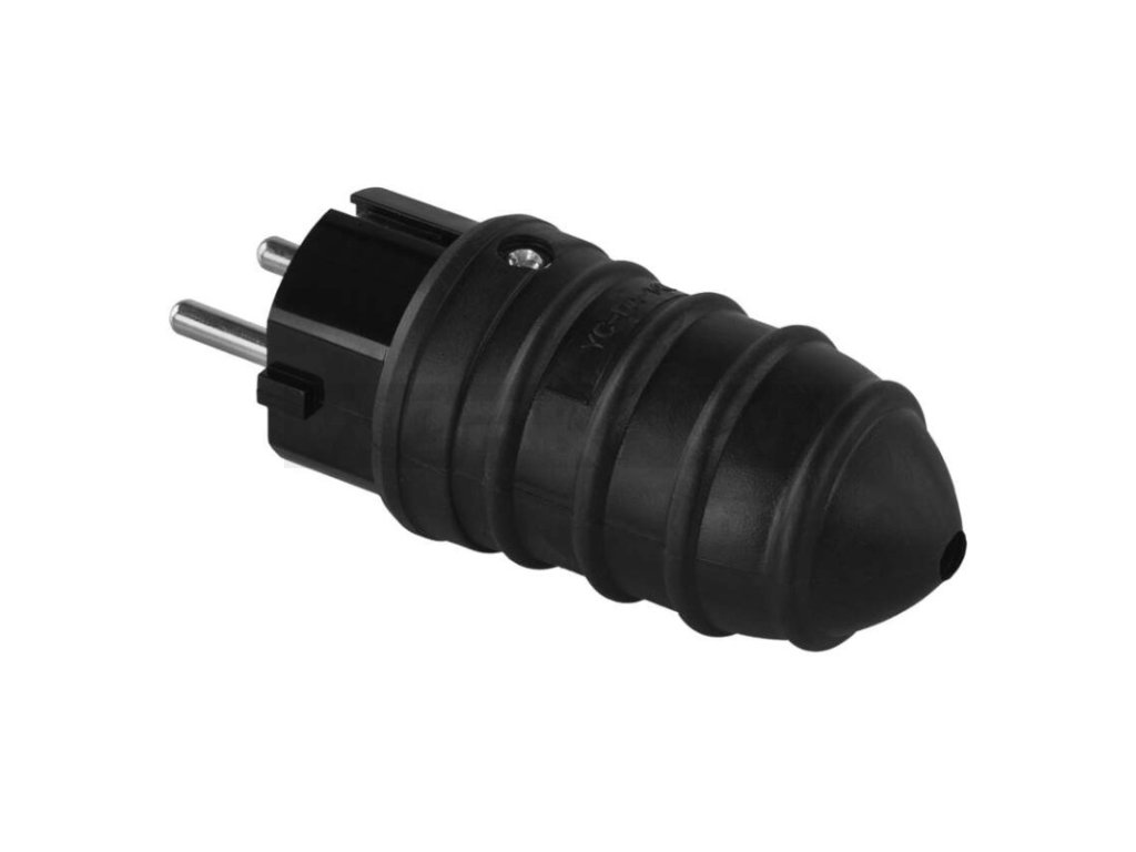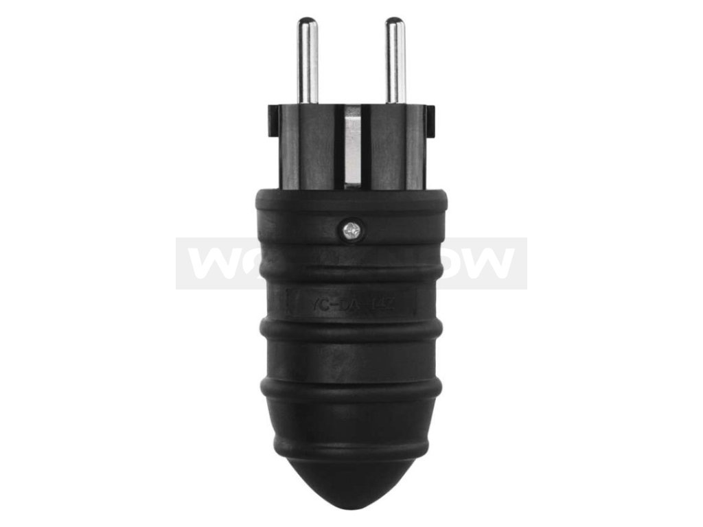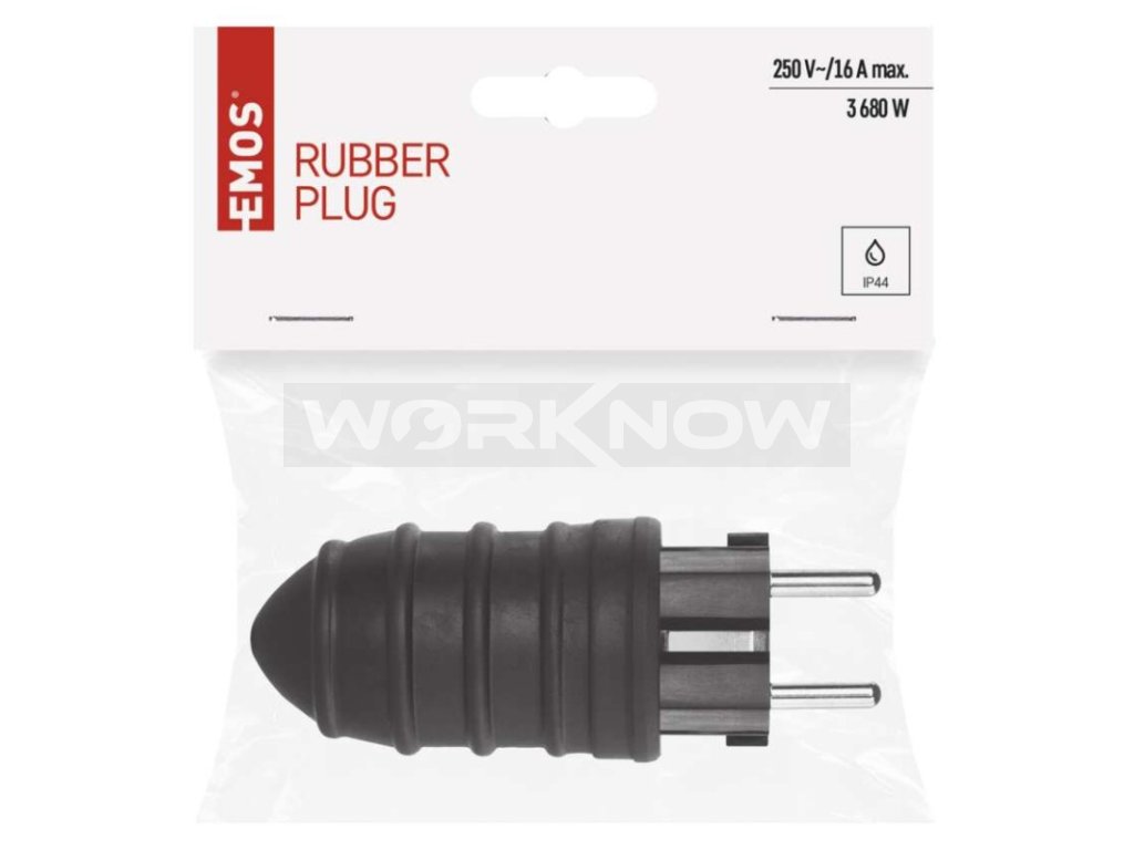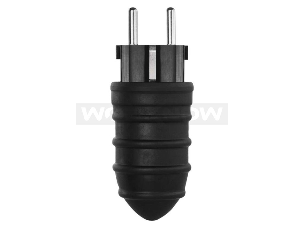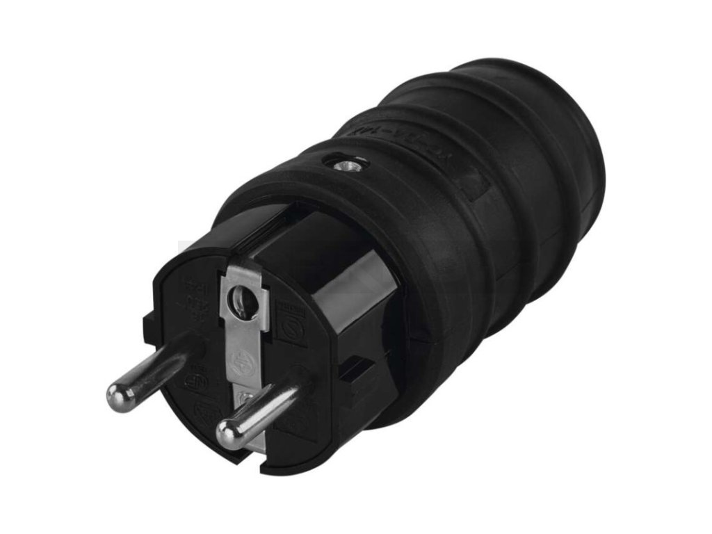 Gumová vidlice pro pohyblivý prodlužovací přívod. Je určena k připojení elektrických zařízení kde je vyžadován vyšší stupeň krytí (i v exteriéru).