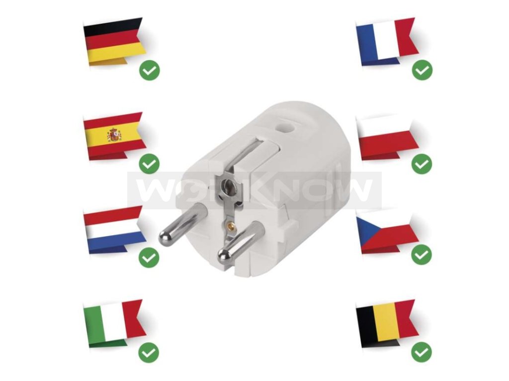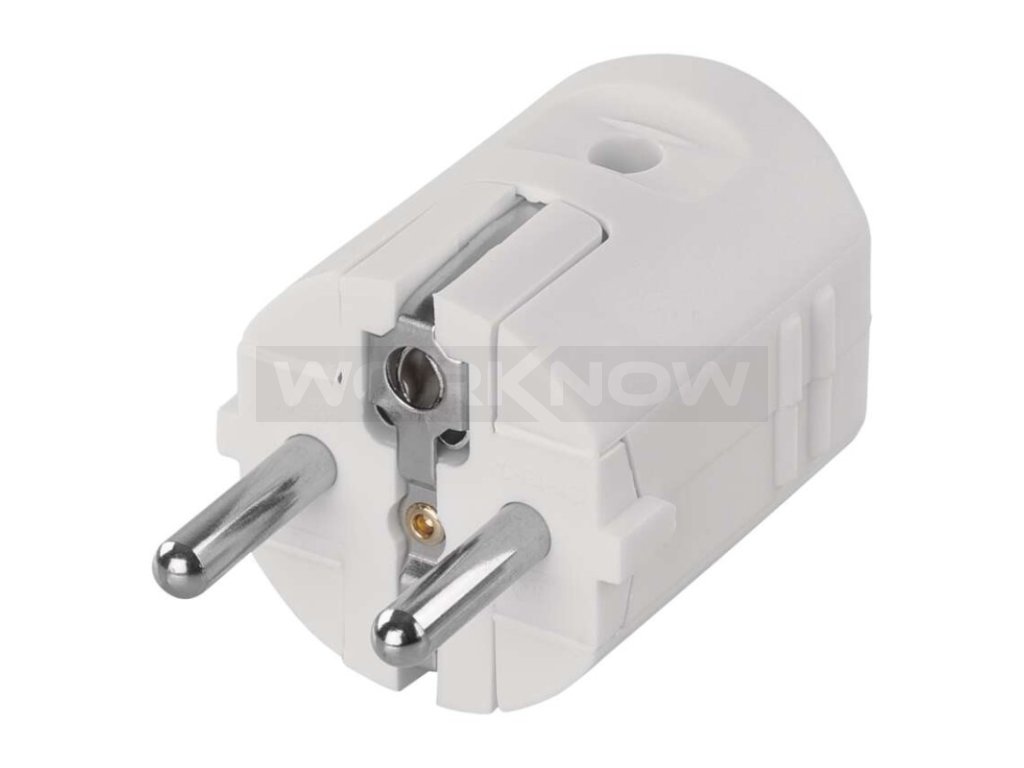 Klasická vidlice pro pohyblivý prodlužovací přívod s praktickou možností otočení vnitřního zapojení.