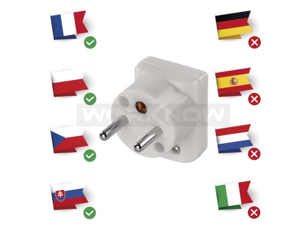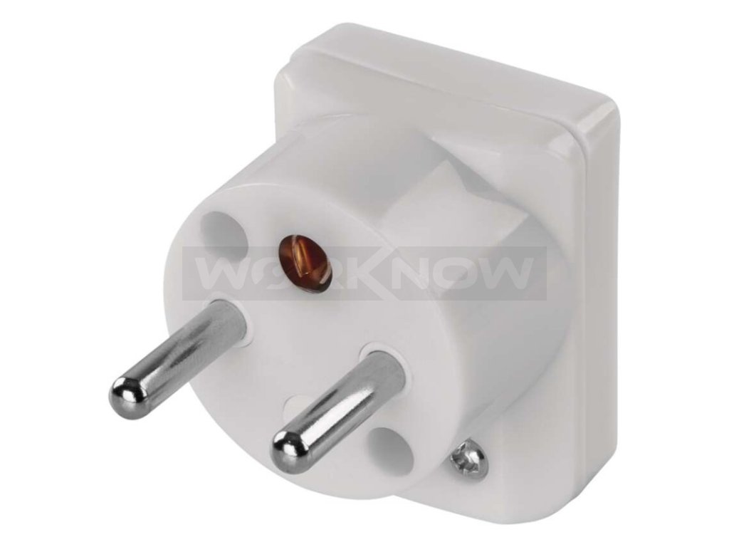 Klasická vidlice pro pohyblivý prodlužovací přívod s praktickou možností otočení vnitřního zapojení.