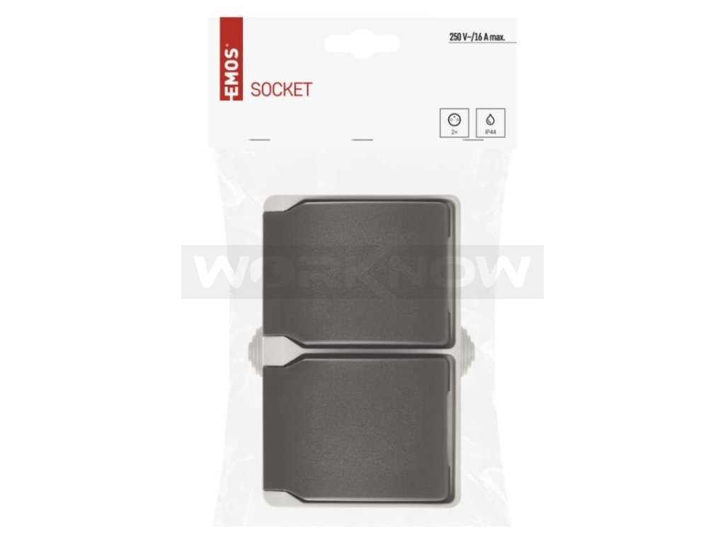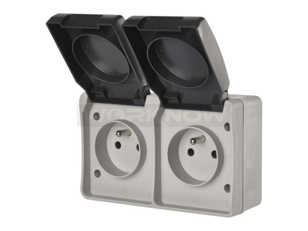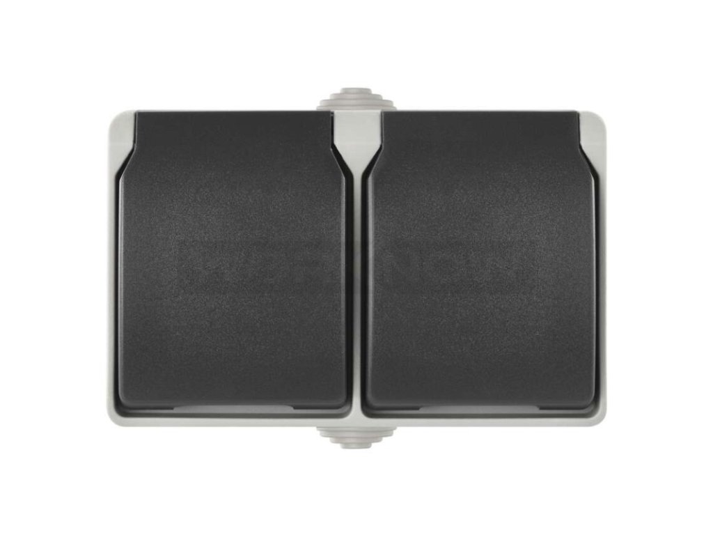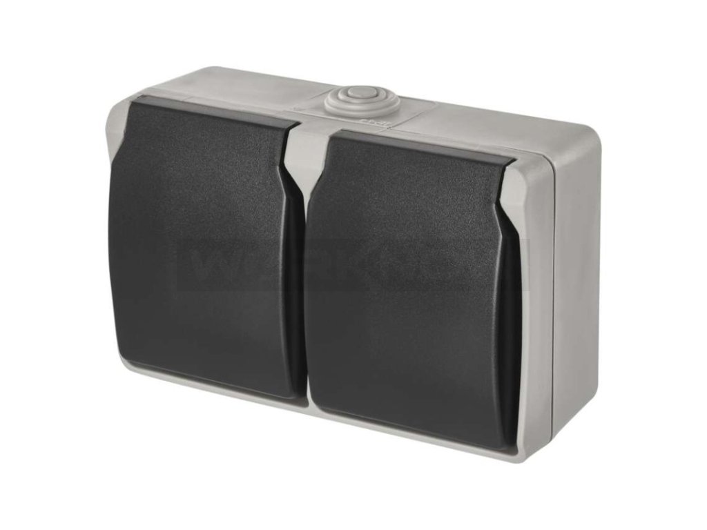 Zásuvka nástěnná dvojitá, šedo-černá, IP44 A1397.1