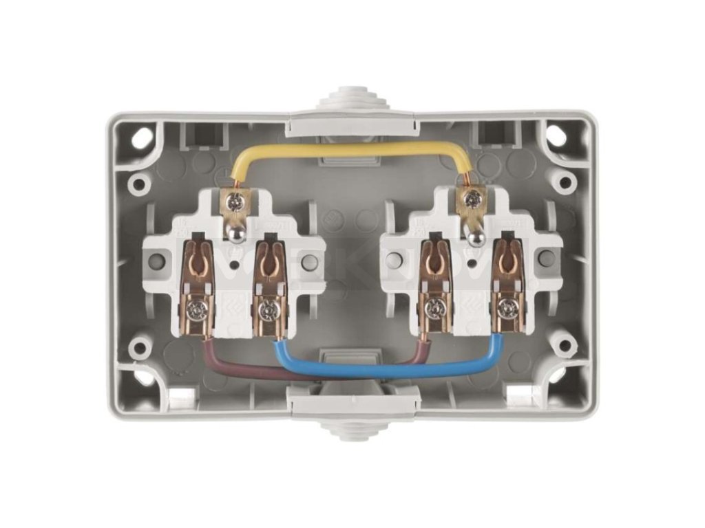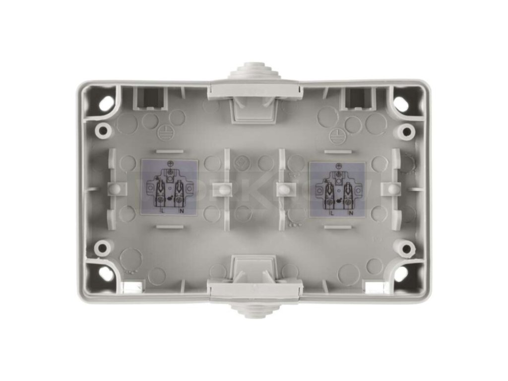| Produkt: | zásuvka dvojnásobná s ochrannými kolíky a víčky s propojením |