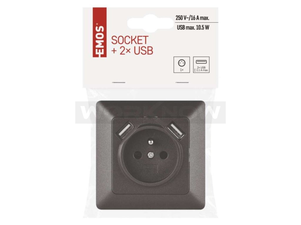 Zásuvka s USB 2,1A max., antracit A6000.2